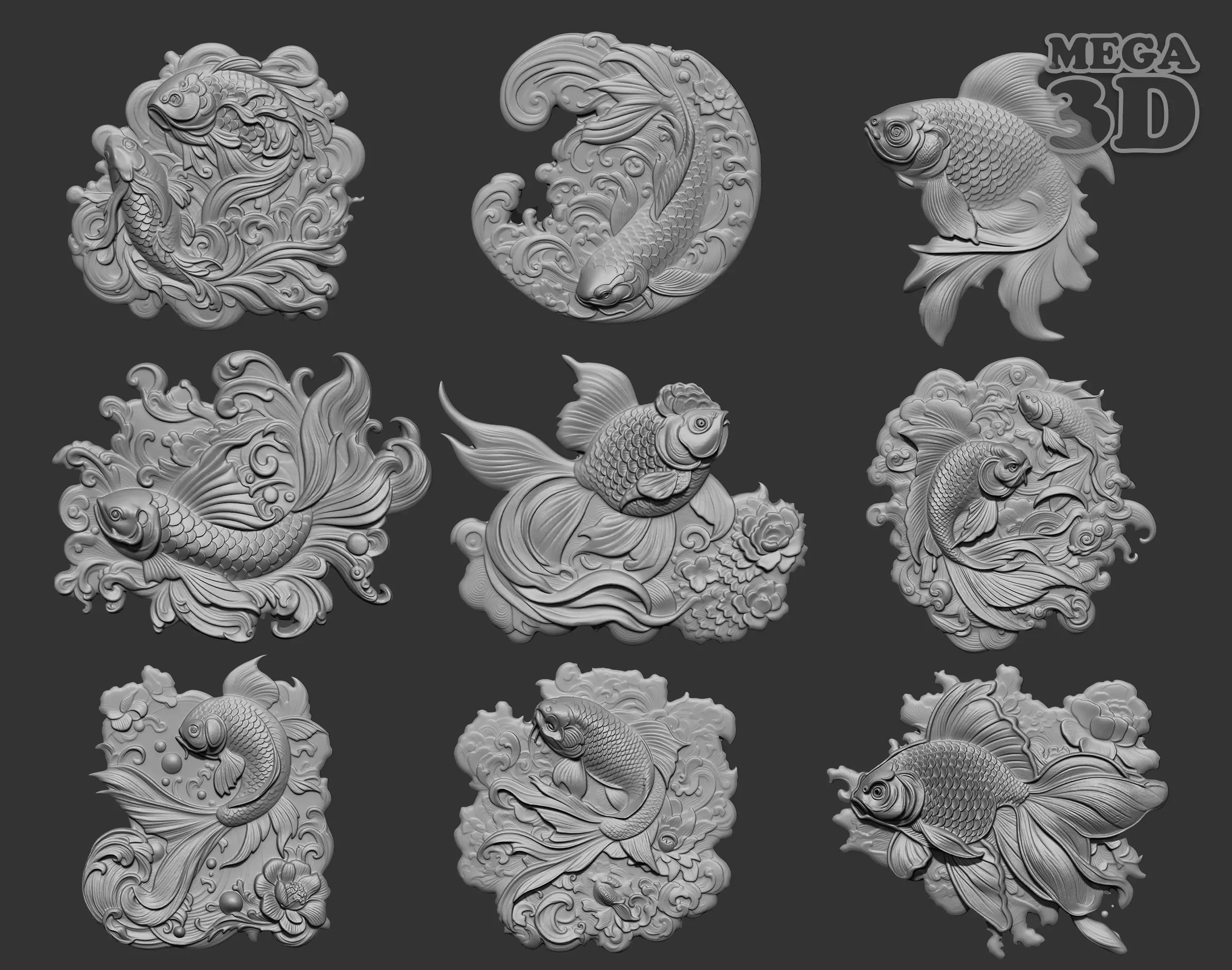 fish, koi, goldfish, animal, cnc, printing, relief, decor, milling, jewelry, artcam, art, engraving, carved, basrelief, woodworking, walldecor, sculptures