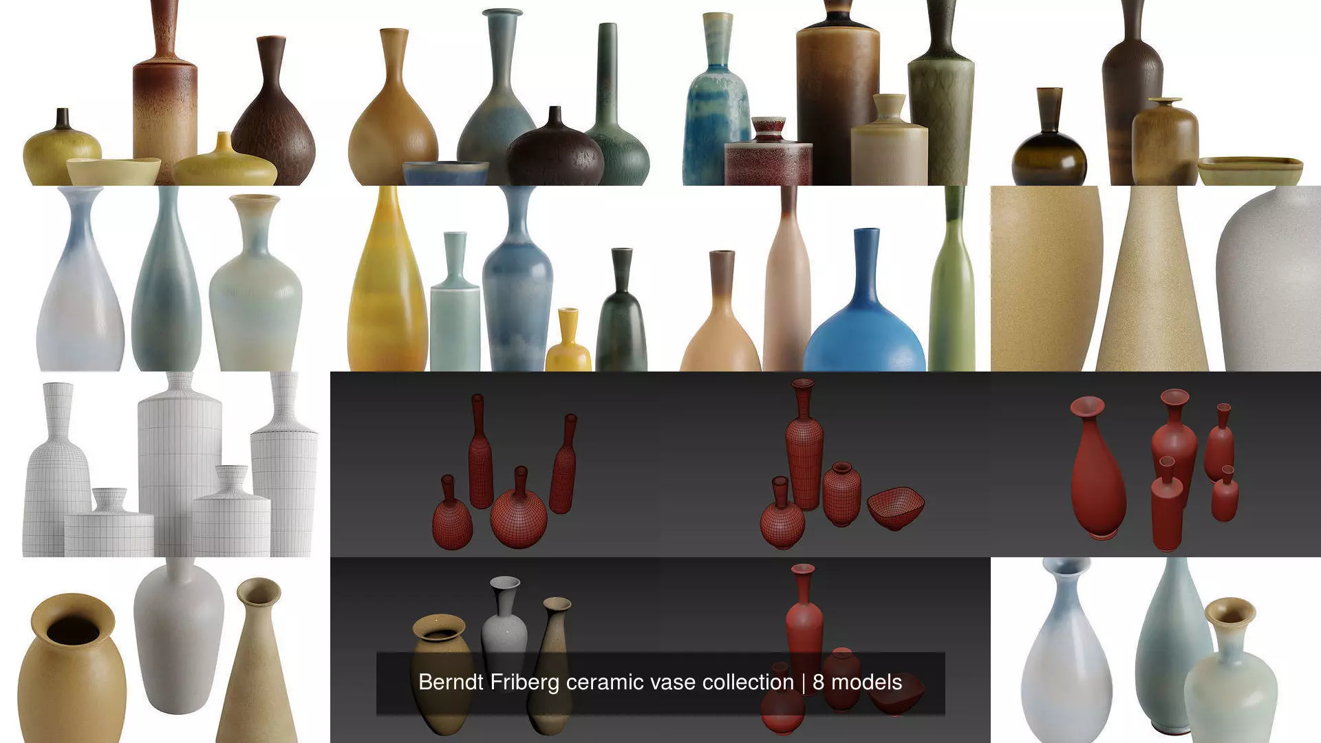 Berndt Friberg ceramic vase collection 3D Model Pack