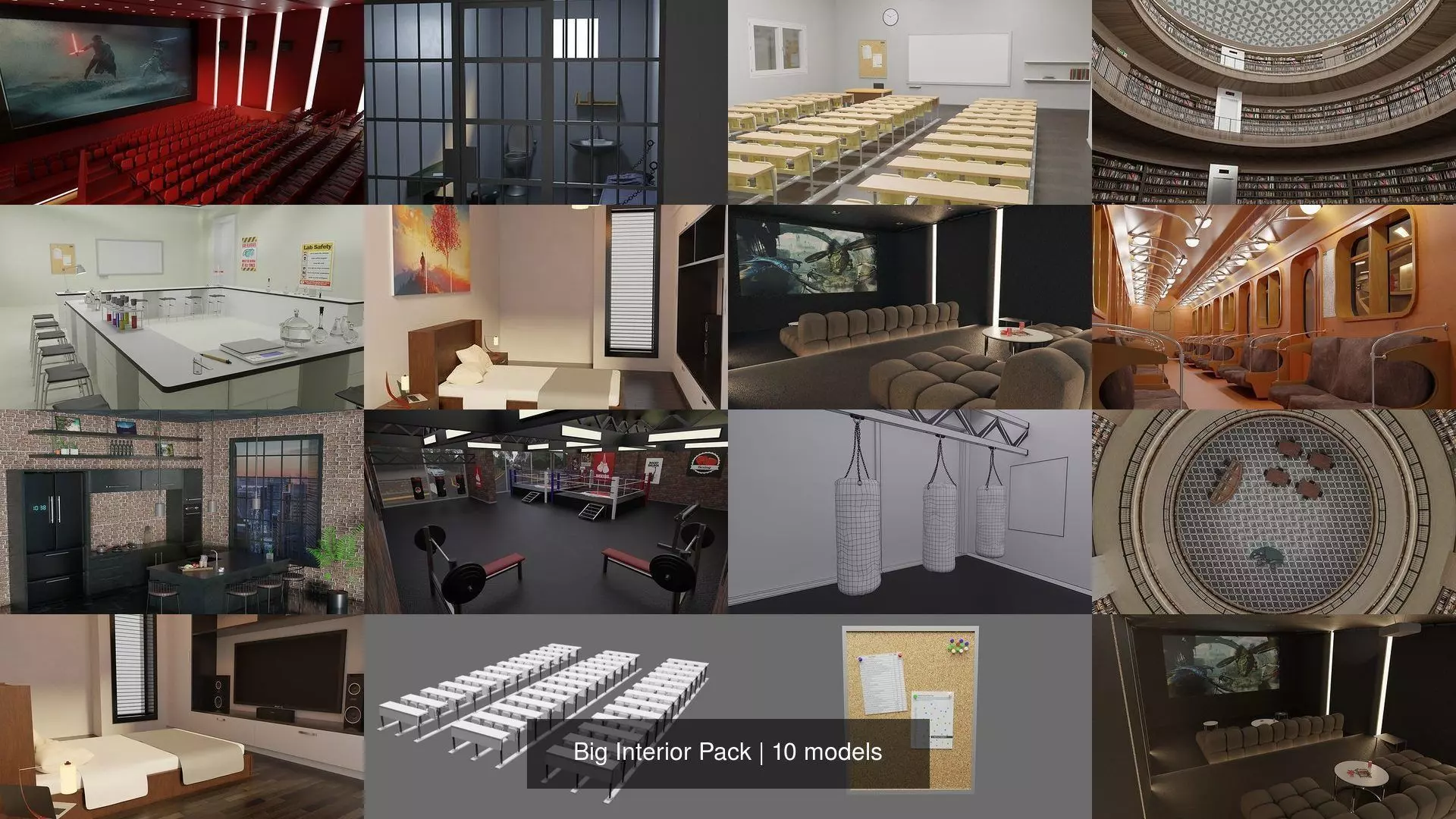 BIG INTERIOR PACKThere are 10 different interior models. Each model has a texture folder. Textures are in the ''Textures.rar'' file.What's in this pack?