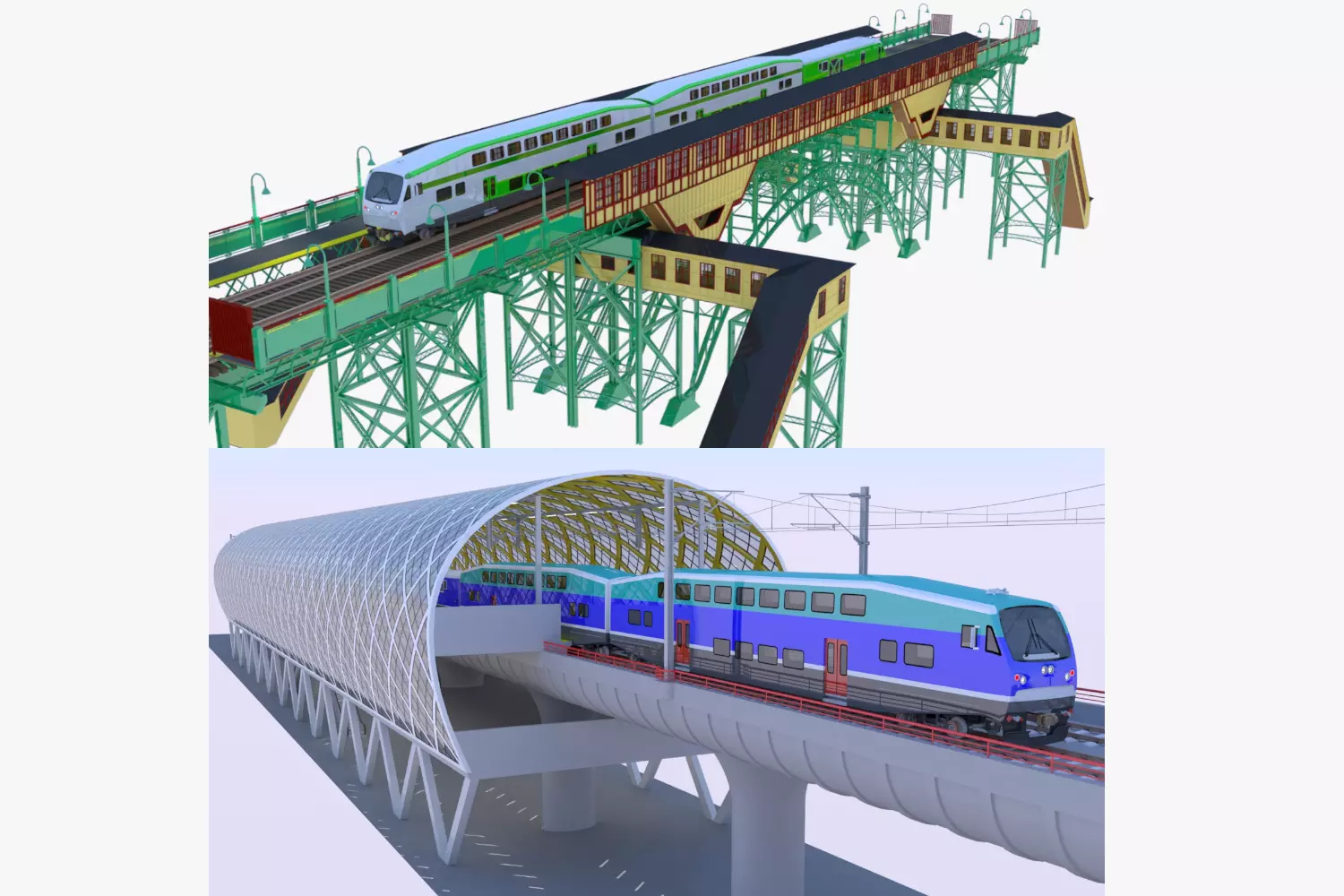 BiLevel train stations bundle 3D Model Pack