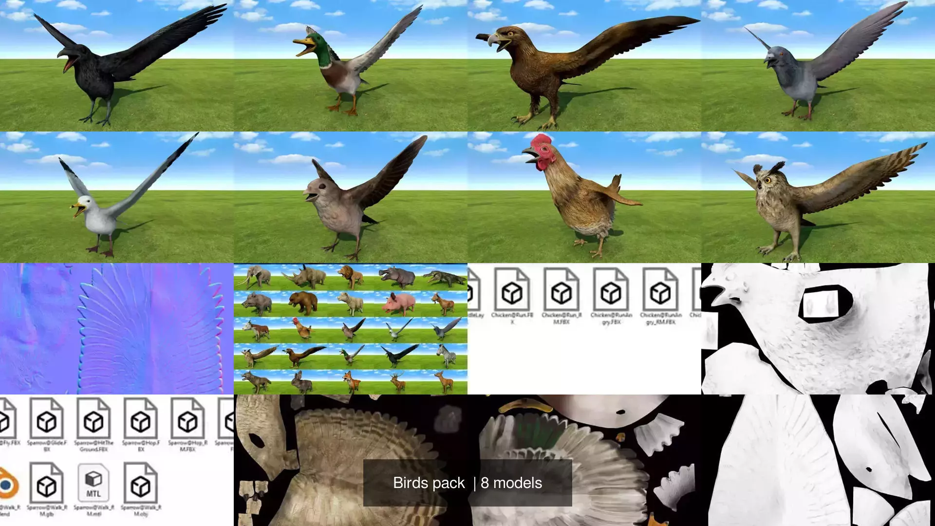 in This Birds Pack chicken crow duck great horned owl seagull sparrow pigeon golden eagle "My recommendation: If you are working on a learning project or an indie game, this is the best choice in terms of price and quality. It’s impossible to find a better option at this price point