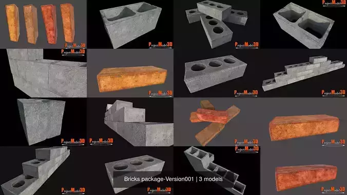 3 Different models of high resolution bricks for construction, or as props.By purchasing the package you save $ 1.70 and the individual commissions too!!