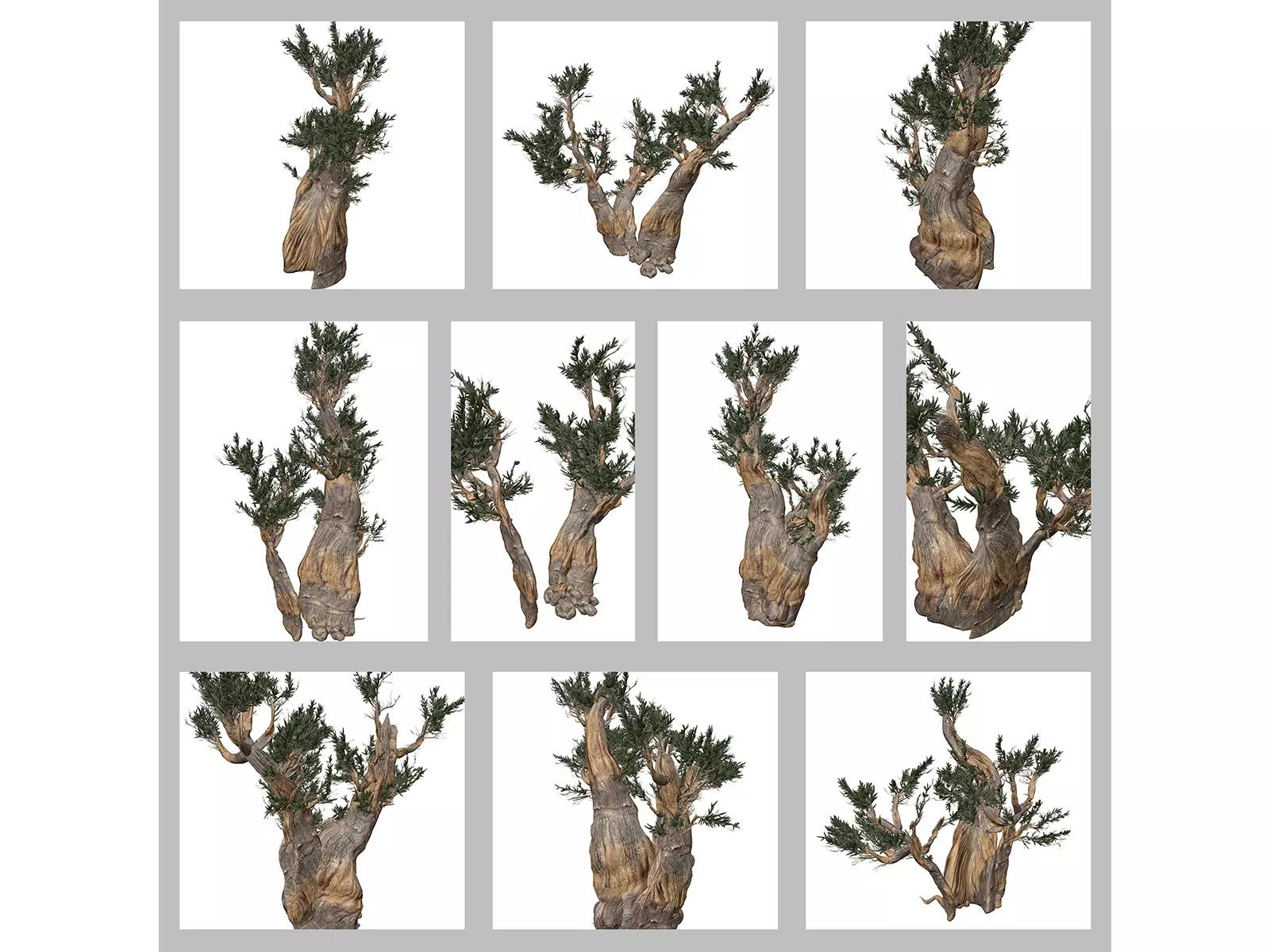 A collection of 10 realistic 3D models of Bristlecone Pine Trees.