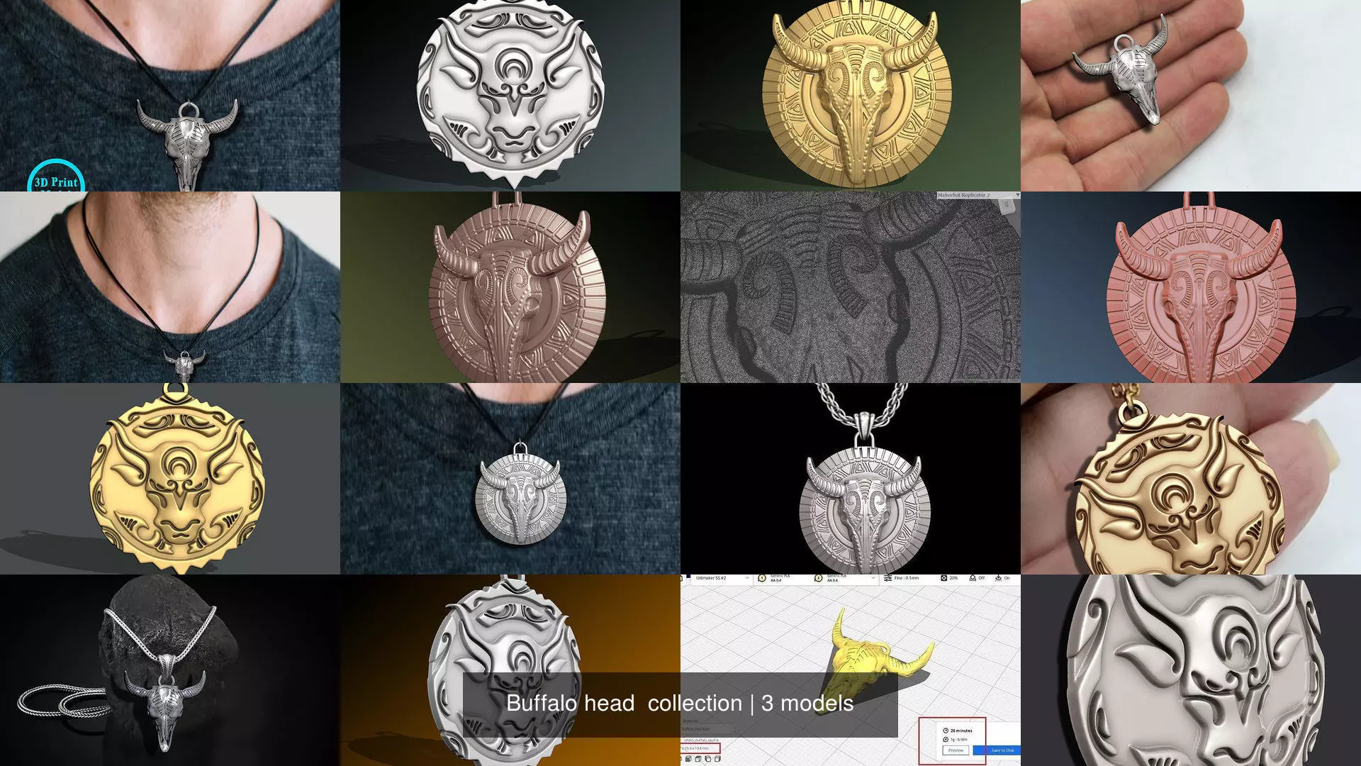 Buffalo head collection 3D Model Pack