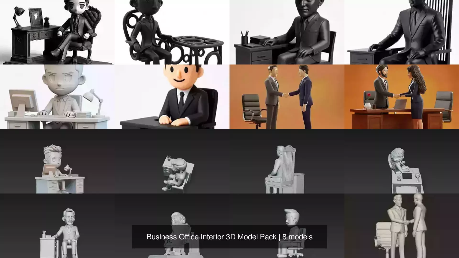 All models in this pack are non movable and optimized for rendering and production workflows. Files are provided in multiple formats including FBX, OBJ, and STL. The models are Print Ready. Adjust Size Before Print according to your specific project requirements. Perfect for corporate branding visuals, workplace concepts, training materials, and professional presentations.