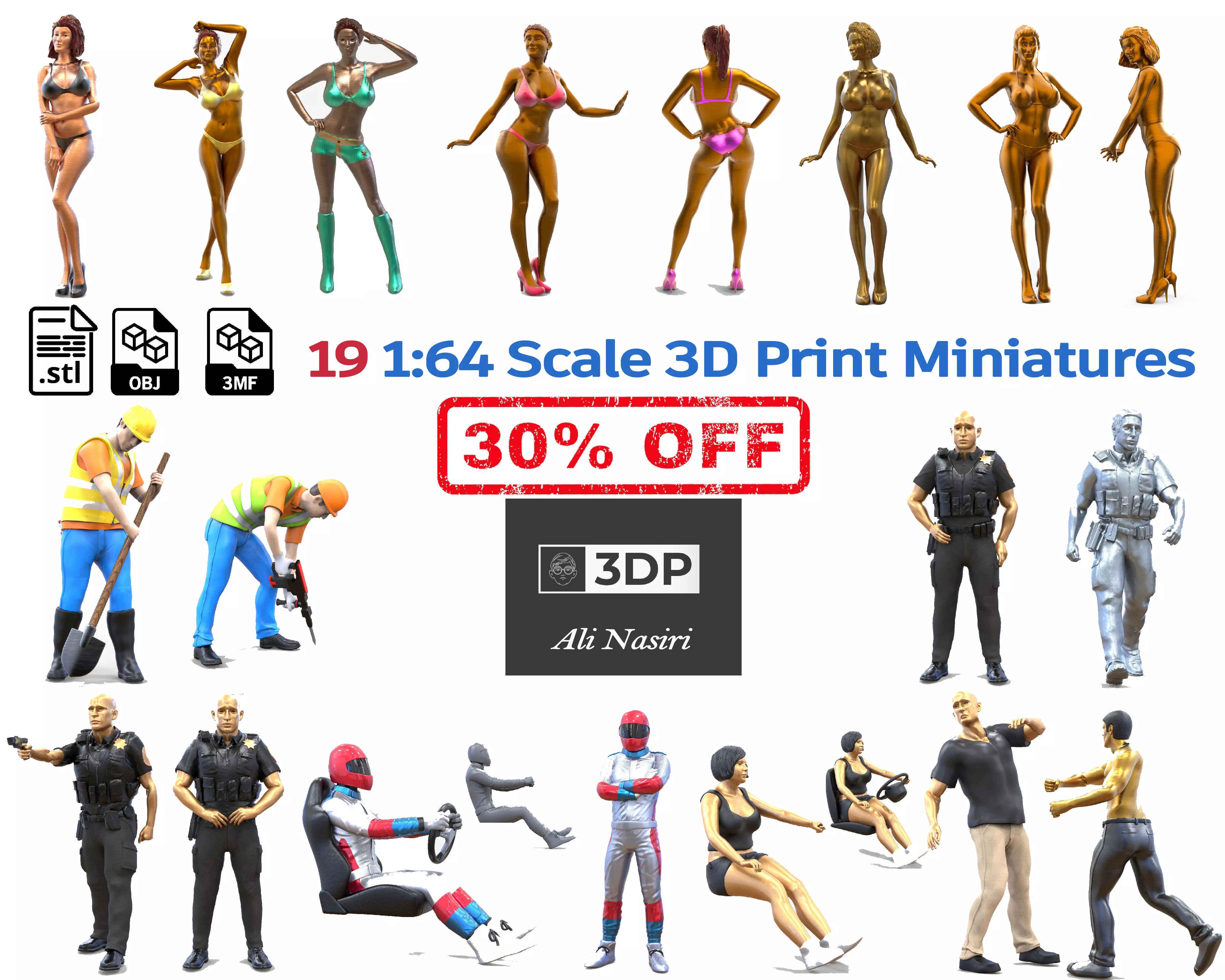The models are available in several popular formats including OBJ, STL (print-ready), and 3mf.