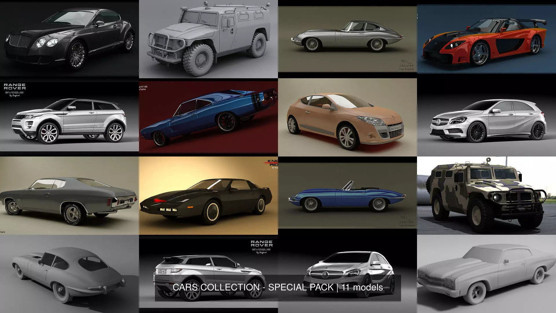 Special of various sport cars : Dodge, Chevrolet, Pontiac, Jaguar, Mercedes, Bentle, Range-Rover, Veilside, ...