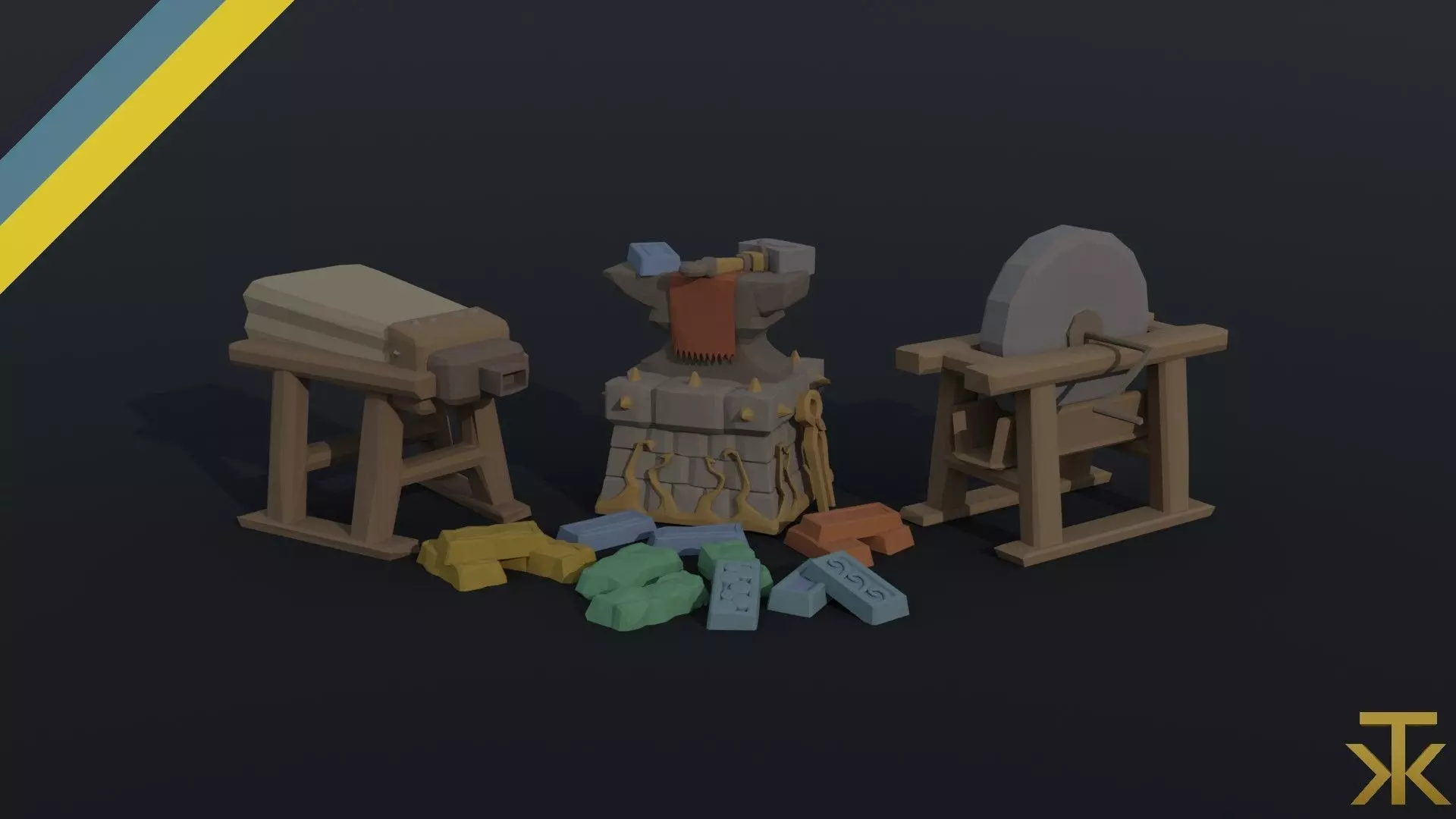 This is cartoon blacksmith kit Polygonal Style(20 object)