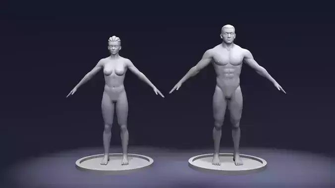 Cartoon Strong Male & Female Body Base Mesh 3D Model – IK/FK Rig + Face Rig (Game & Animation Ready) pack consists of 2 models: