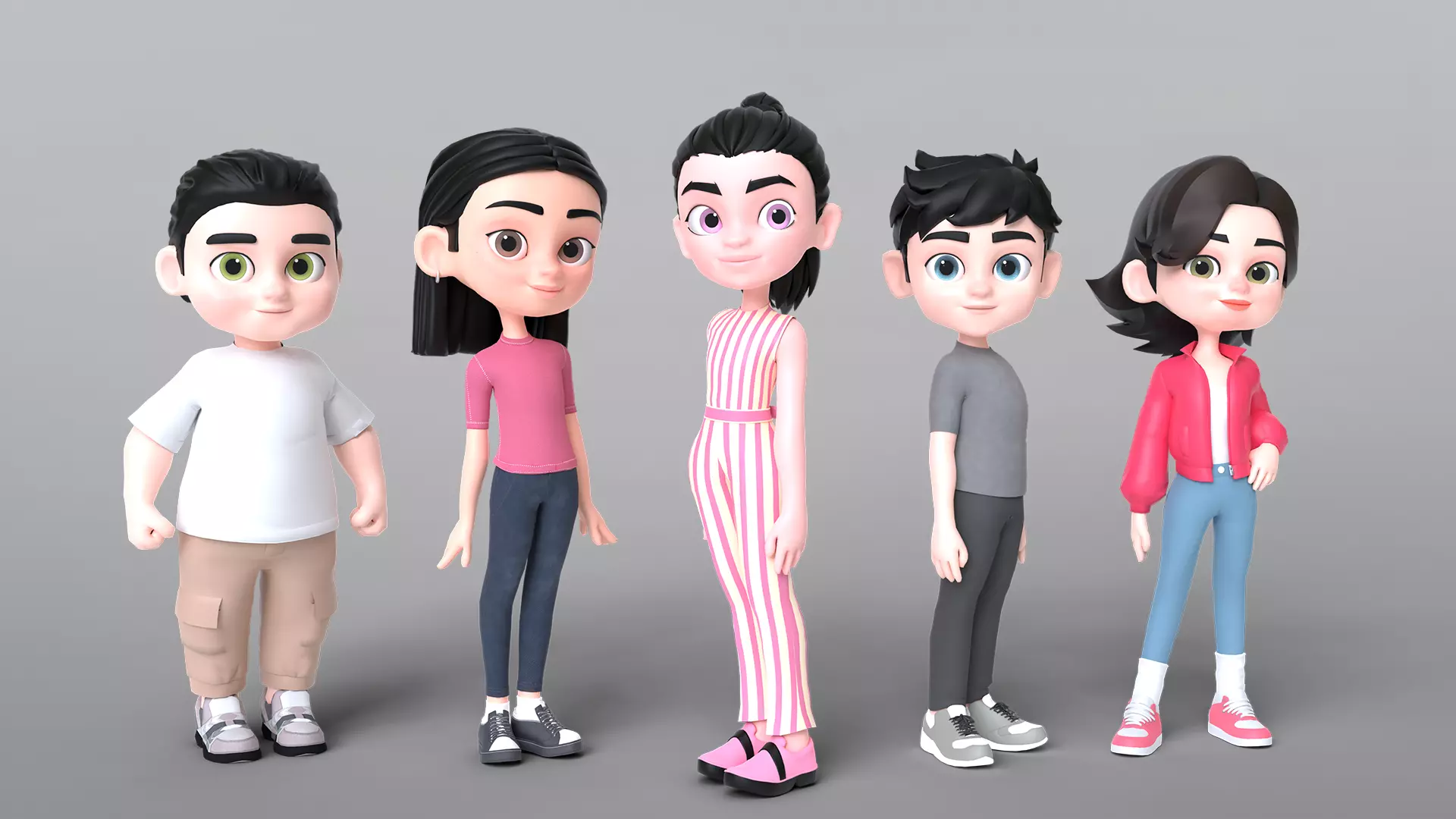 Cartoon Teen Kid Characters 3D Model Pack