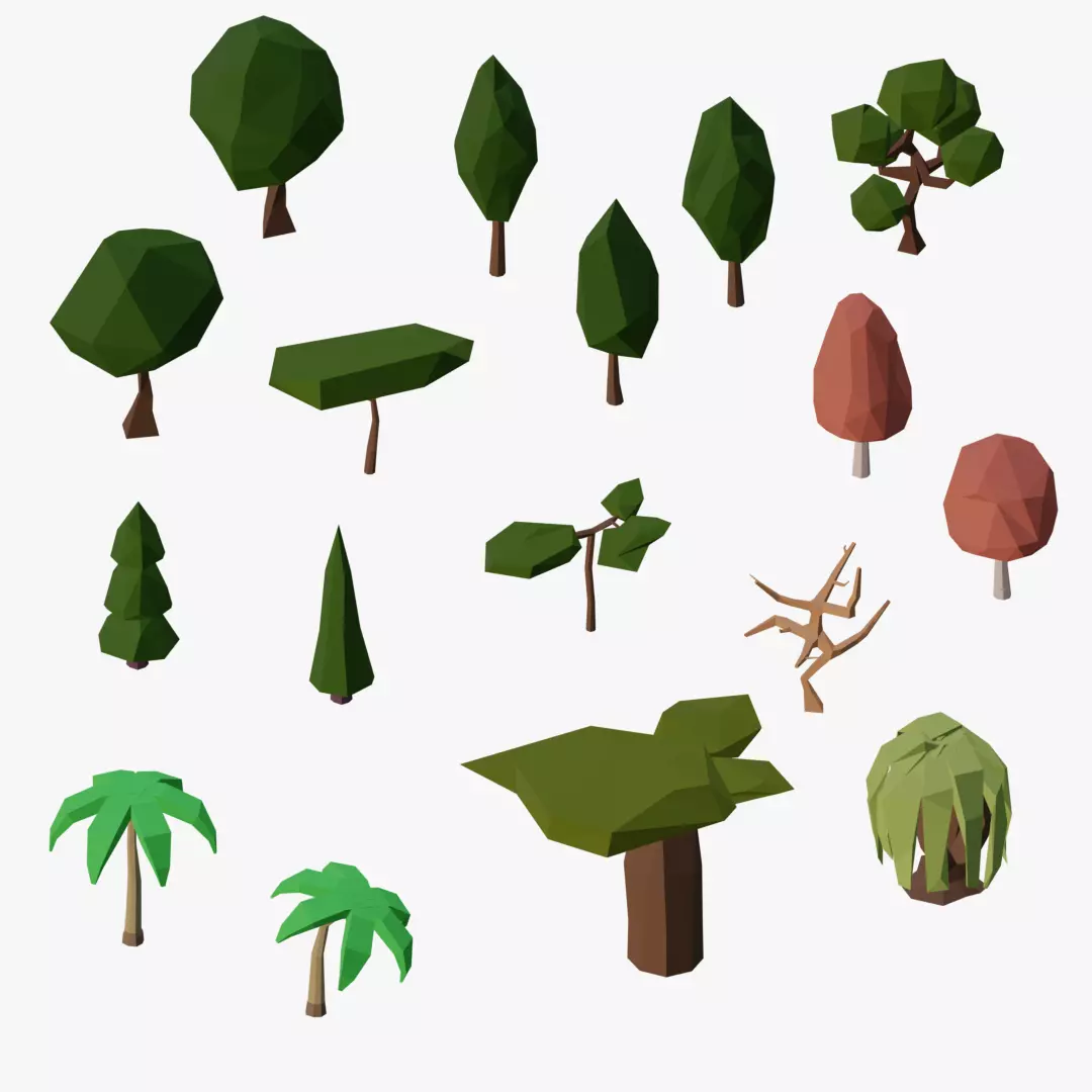 A collection of various simple cartoon-styled tree packs for different biomes: classic forests, savannahs and special places like beaches.