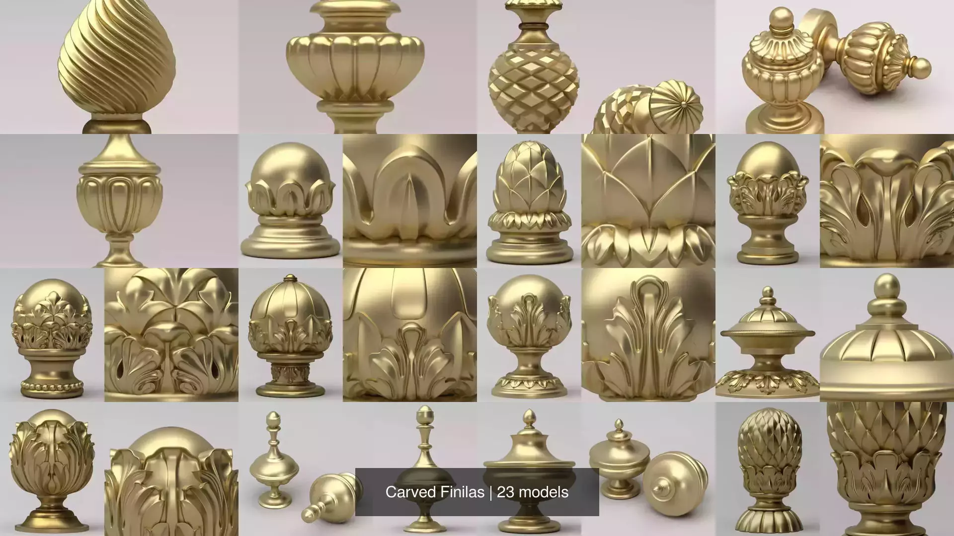 Enhance your architectural or decorative projects with this intricately designed finials. This 3D models features a spherical shape adorned with ribbed segments that converge at the top, crowned by a small dome-like structure. The lower half of the sphere showcases elaborate acanthus leaf designs, adding a touch of classical elegance. Mounted on a circular base with detailed foliate patterns, this finial exudes sophistication and style. The metallic finish, resembling brass or gold, gives it a timeless and luxurious appearance. Ideal for architectural visualization, game asset creation, or 3D printing projects, this finial is a perfect addition to your collection.