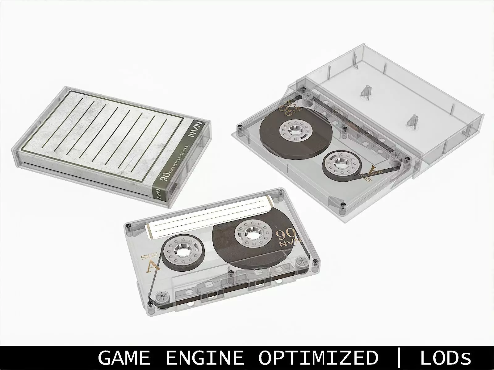 Cassette Tape and Case White - 4 Variants 3D Model Pack