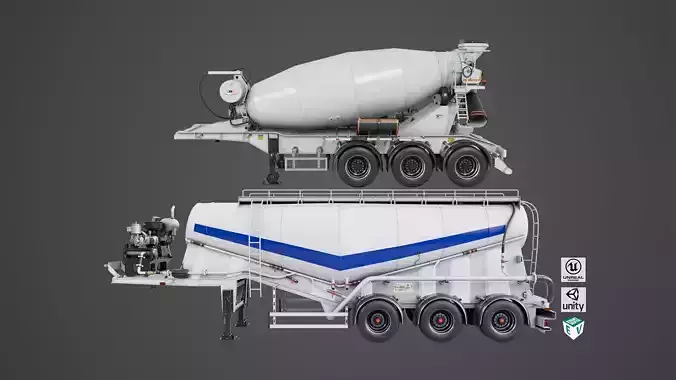 Cement Mixer and Trailer Rigged All PBR Unity UE Textures 3D Model Pack