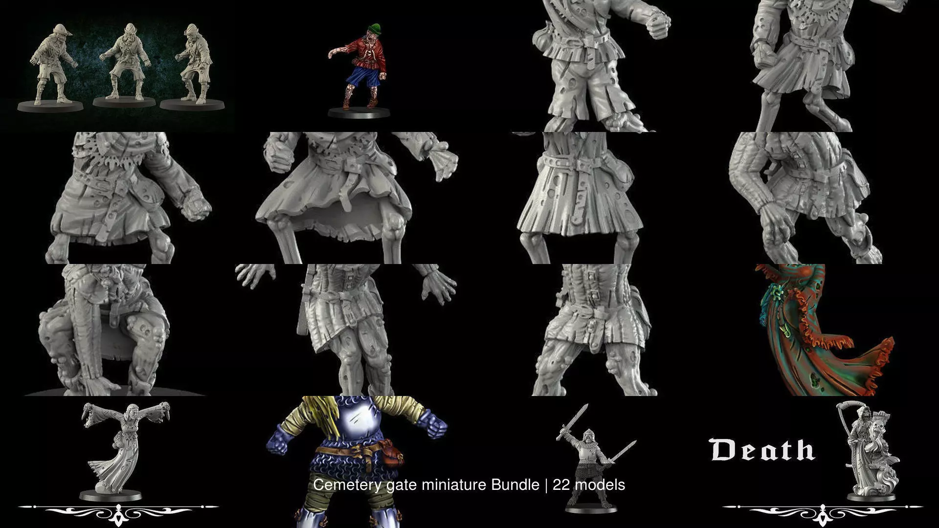 this undead bundle contains all the kickstarter thumbnails the cemetery gate.An intense fantasy football team with skeletons, ghouls, zombies, mummies, ghosts.