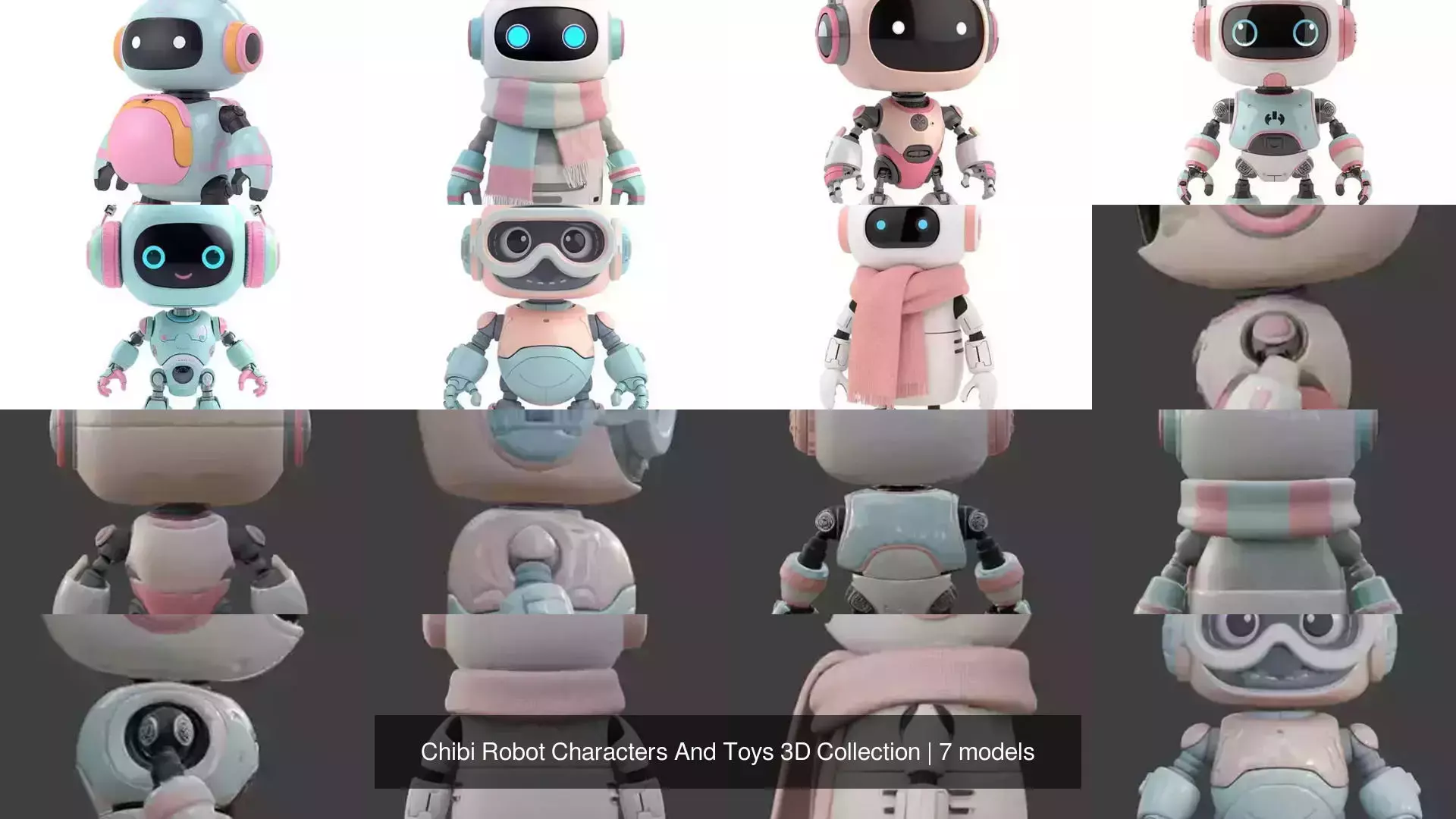 A cute and futuristic collection of chibi-style robot characters designed with playful proportions, clean shapes, and toy-like charm.This pack blends adorable aesthetics with sci-fi inspiration, making it ideal for casual games, mobile projects, animations, NFTs, children’s content, and stylized virtual worlds.