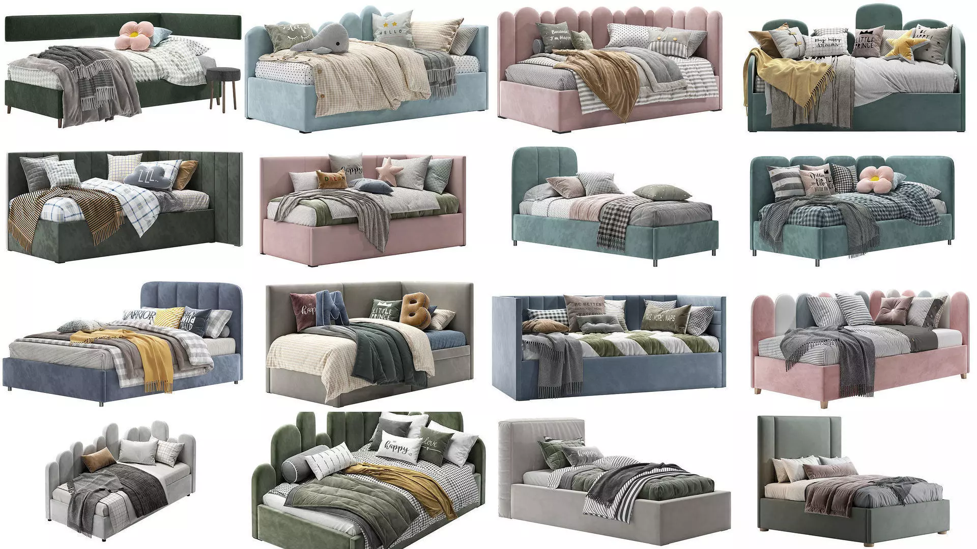 Over 75 different files and more than 100 additional beds and bedding including animal pillows and nightstands just perfect for kids' room interior designover 90% of models included V-ray, corona, FBX, OBJ formats