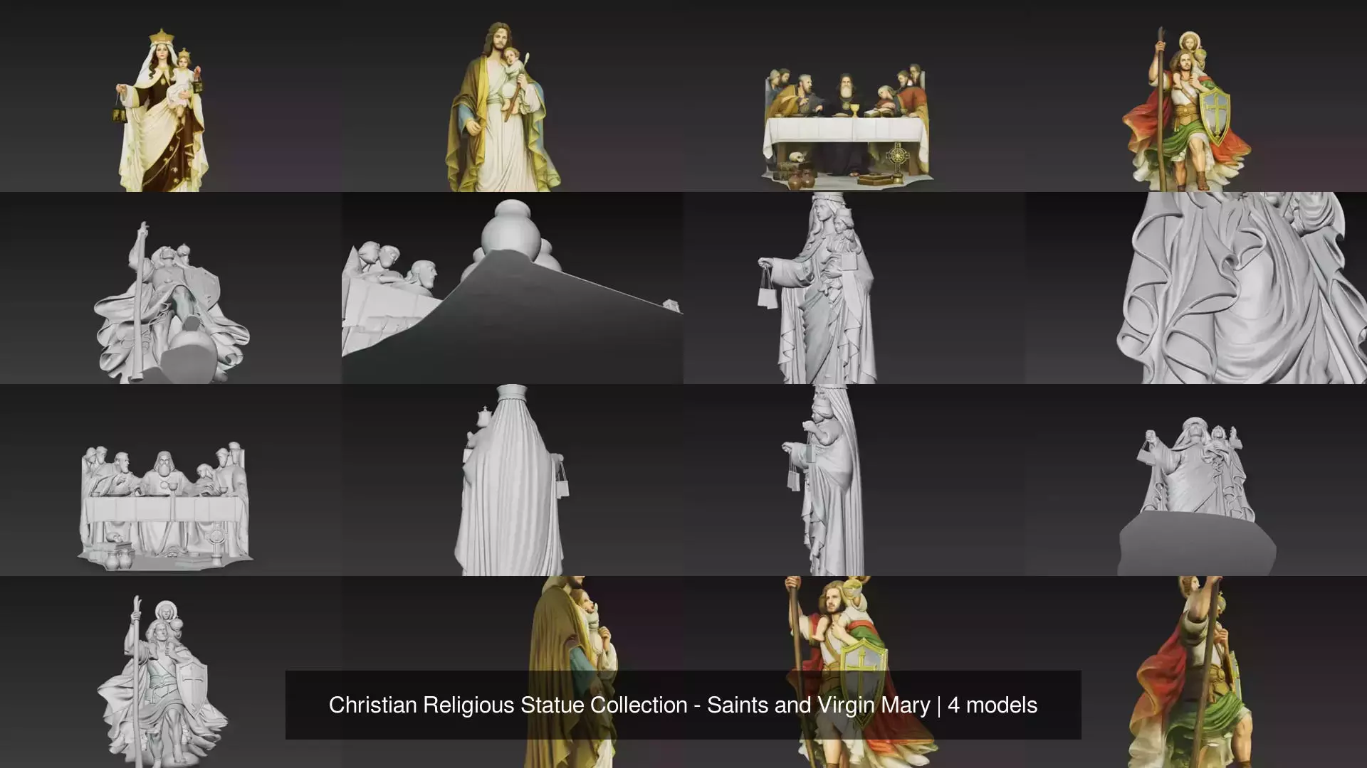 Each model represents an important figure or moment in Christian tradition, designed as detailed sculptural representations suitable for religious art, decoration, and visualization projects.