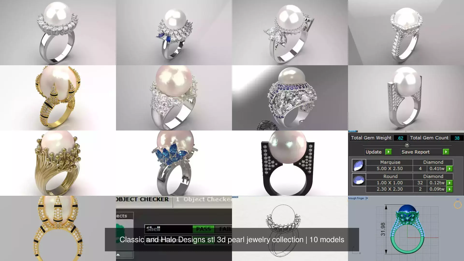 This collection includes 10 3D models (CAD File) for making large pearl rings with different designs: