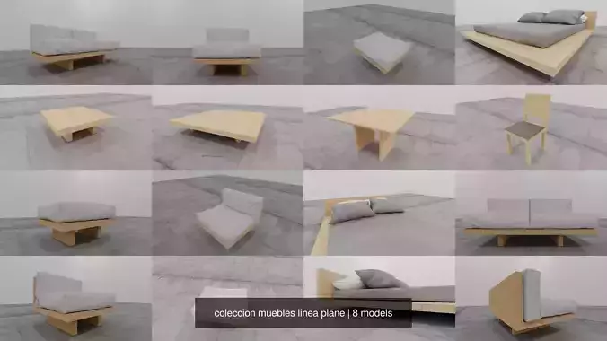 coleccion muebles linea plane low-poly 3d model