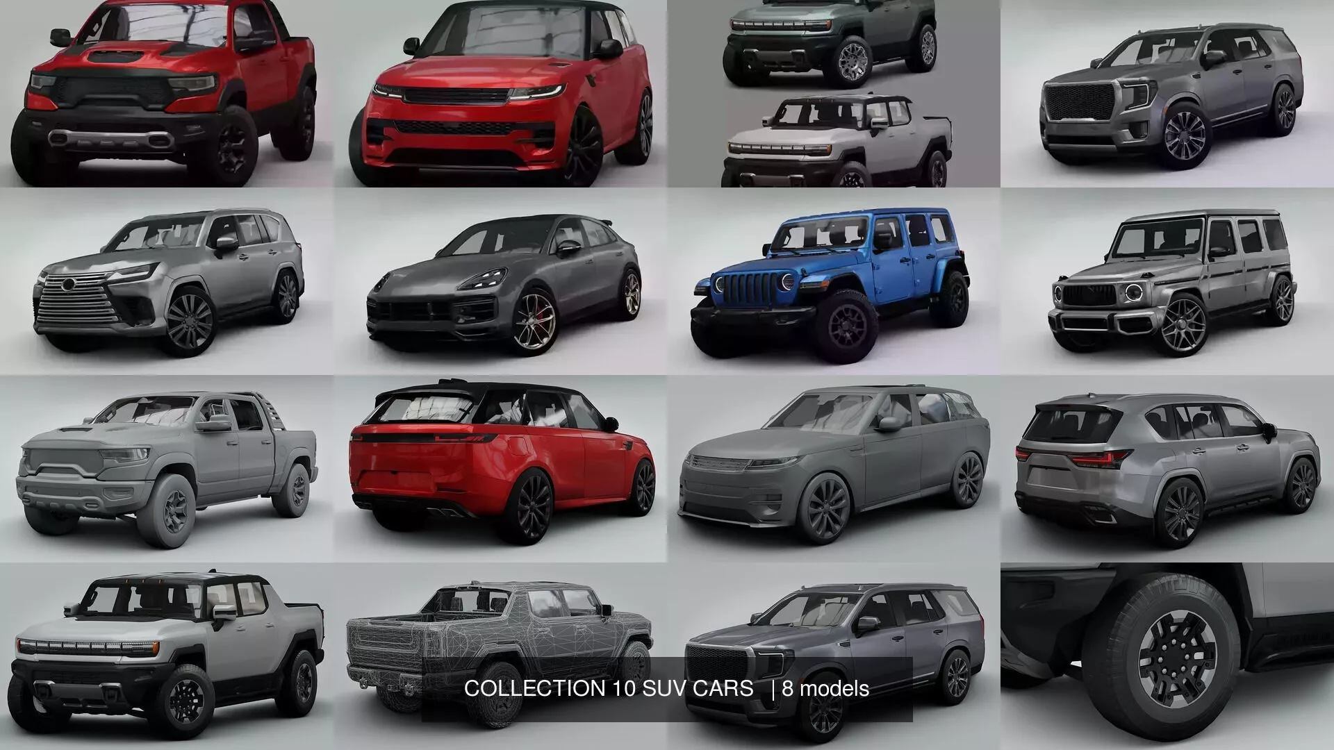 All models have a small number of polygons: from 30.000 polygons to 100,000 polygons.