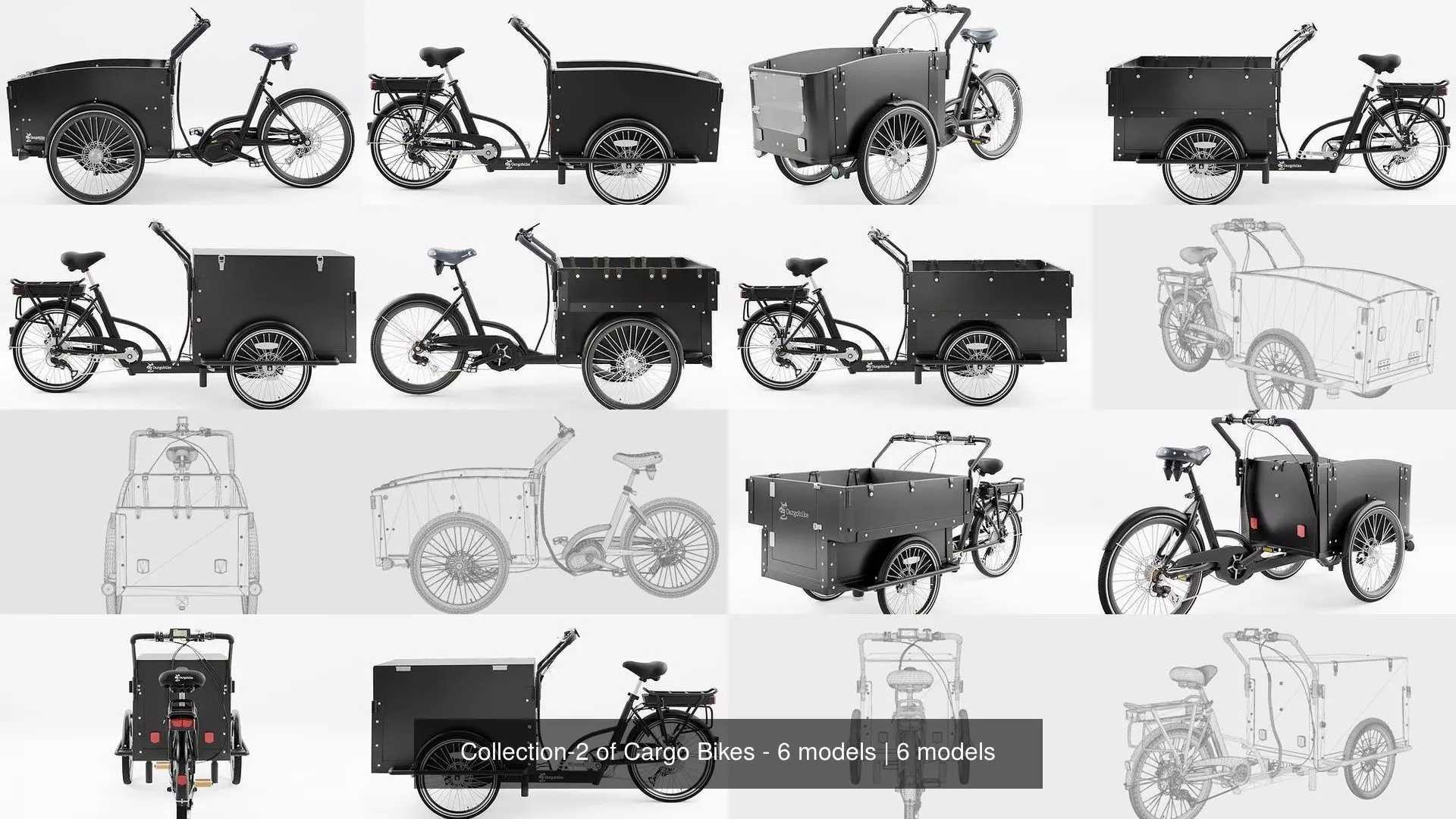 Diverse Assortment: Our Cargo Bike Collection boasts a diverse range of cargo bike models, each with its own distinct character and charm, meticulously detailed and textured to ensure a true-to-life appearance in your renders or animations.