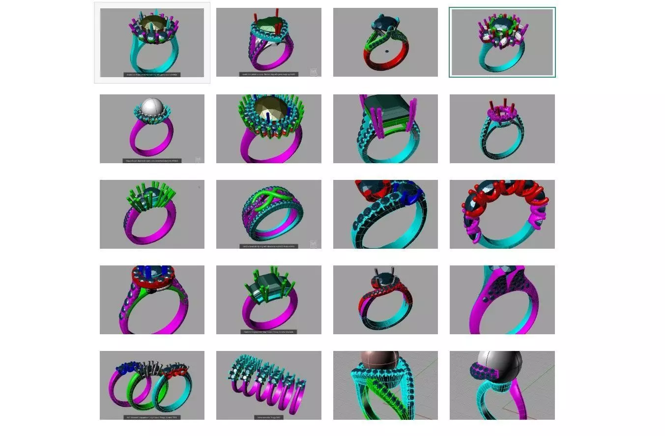 Hello friends, I offer you one more model of a jewelry, I remind you that this is only 3d model. On all questions write, I will answer. Good shopping for you.1) NAME CODE : vr20 STONES : Diamond round 1 pcs 3,50 mm 0,15 cts // Diamond round 2 pcs 3,50 mm 0,30 cts // Diamond round 3 pcs 3,50 mm 0,45 cts // Diamond round 4 pcs 3,50 mm 0,60 cts // Diamond round 5 pcs 3,50 mm 0,75 cts //Diamond round 6 pcs 3,50 mm 0,90 cts //FINGER SIZES: Size diameter 16,56 mm.2) Cod :An229 STONES: Diamond round pave' 12 pcs 1,30 mm // 14pcs 1,68 mm Gems: Round 4,14 mm FINGER SIZES: Size diameter 16,74 mm.3) Code : Ap24 STONES: Diamond round pave' 45 pcs 1,20 mm // Pearl diameter 10,00 mm FINGER SIZES: Size diameter 18,14 mm4) Code : Ap25 STONES: Diamond round pave' 60 pcs 1,35 mm // Pearl diameter 14,65 mm FINGER SIZES: Size diameter 17,50 mm5) CODE : Nc200422 STONES : Diamond round 94 pcs 1,40 mm FINGER SIZES: Size diameter 19,58 mm.6) CODE : Nc190422 STONES : Diamond round 18 pcs 2,10 mm / 24 pcs 1,86 mm Gems: Heart 11,50*11,50 mm. FINGER SIZES: Size diameter 16.45 mm.7) CODE: Ap2422 STONES: Diamond round pave' 18 pcs 1,78 mm. Pearl diameter 9,00 mm. FINGER SIZES: Size diameter 17,13 mm8) CODE : 01422 STONES : Diamond round 7 pcs 2,90 mm. Diamond navette 7 pcs 2,49*4.39 mm. Gems: Diamond Round 7.98 mm. FINGER SIZES: Size diameter 17.03 mm.9) CODE: TR54 STONES: Diamond Emerald 1 pcs 6.00*8.00 mm. 2 pcs 5.32*3.50 mm. FINGER SIZES: Size diameter 16.71 mm
