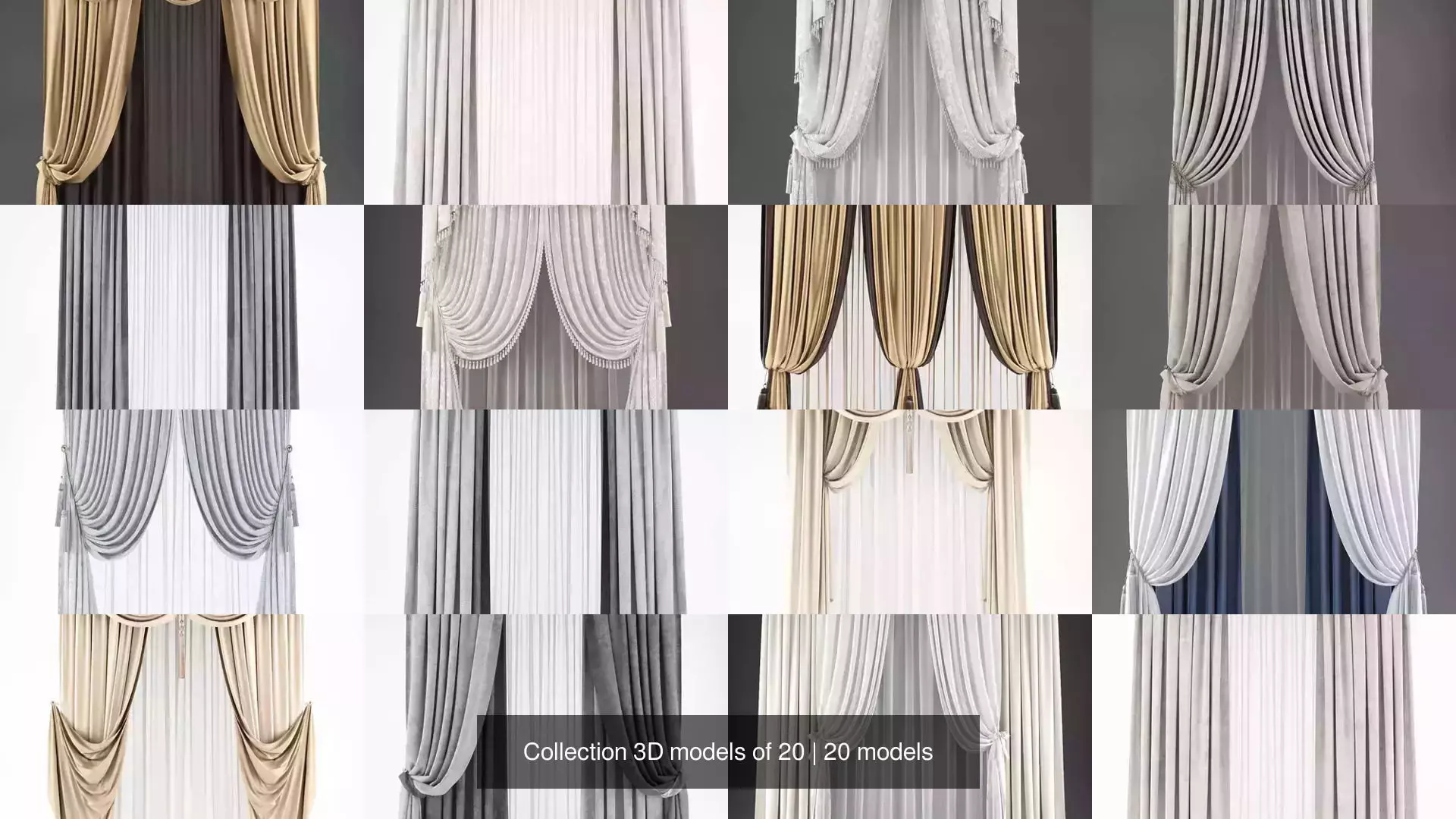 Collection 3D models of 20 curtains.3dmax/FBX/obj/textures