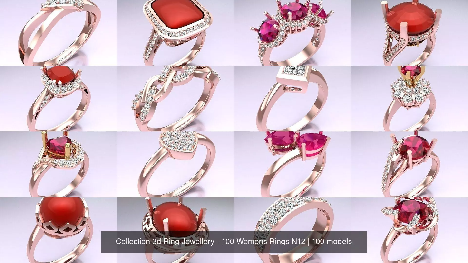 Collection 3d Ring Jewellery - 100 Womens Rings N13.We have included a list below, you can click on each ring to view.The models have been tested by us before export, ready for 3d printing.