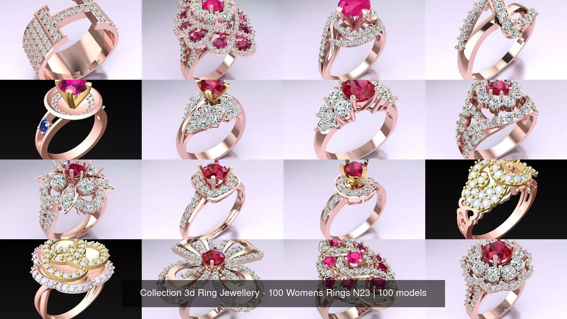 Collection 3d Ring Jewellery - 100 Womens Rings N23.We have included a list below, you can click on each ring to view.The models have been tested by us before export, ready for 3d printing.