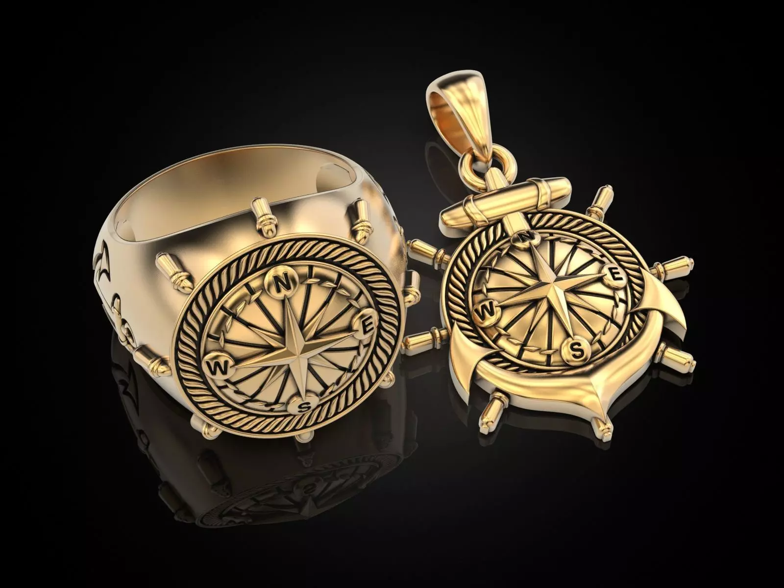 Collection Anchor rudder and compass 3D Model Pack