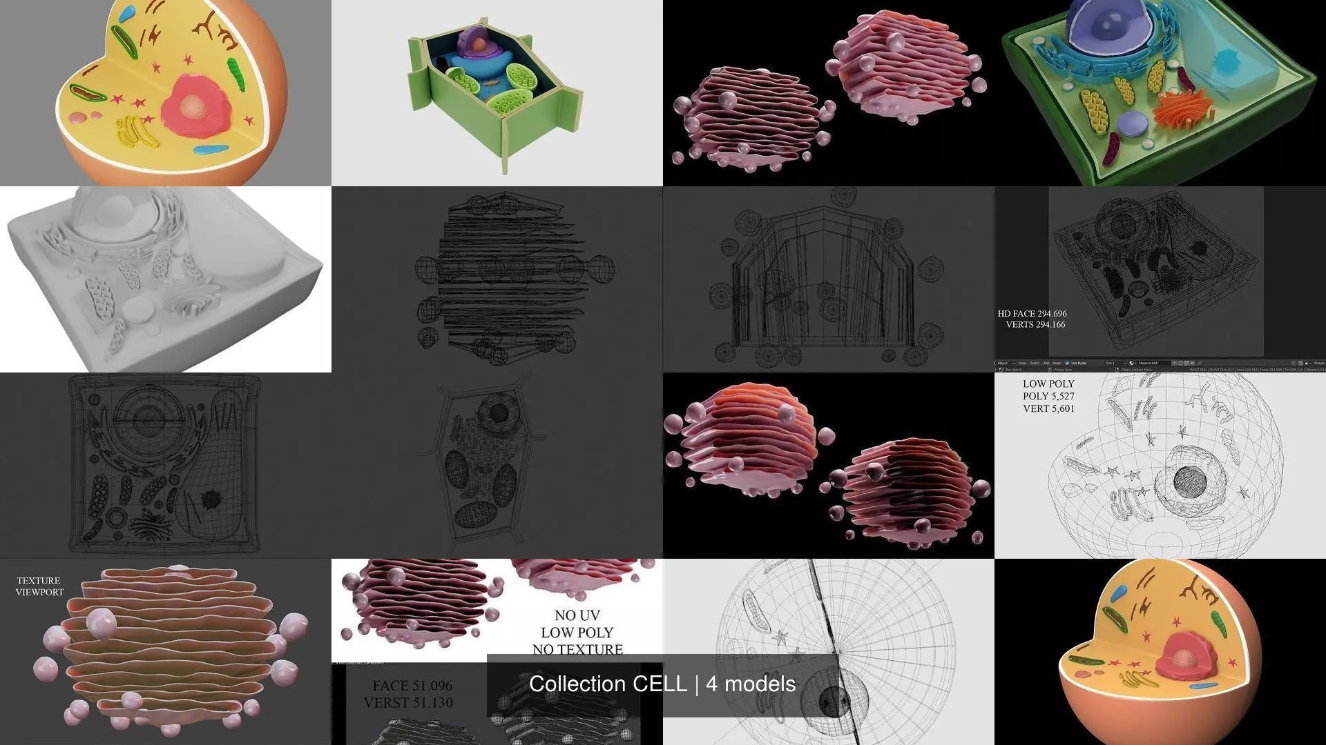 4 Different models of animal and plant cells