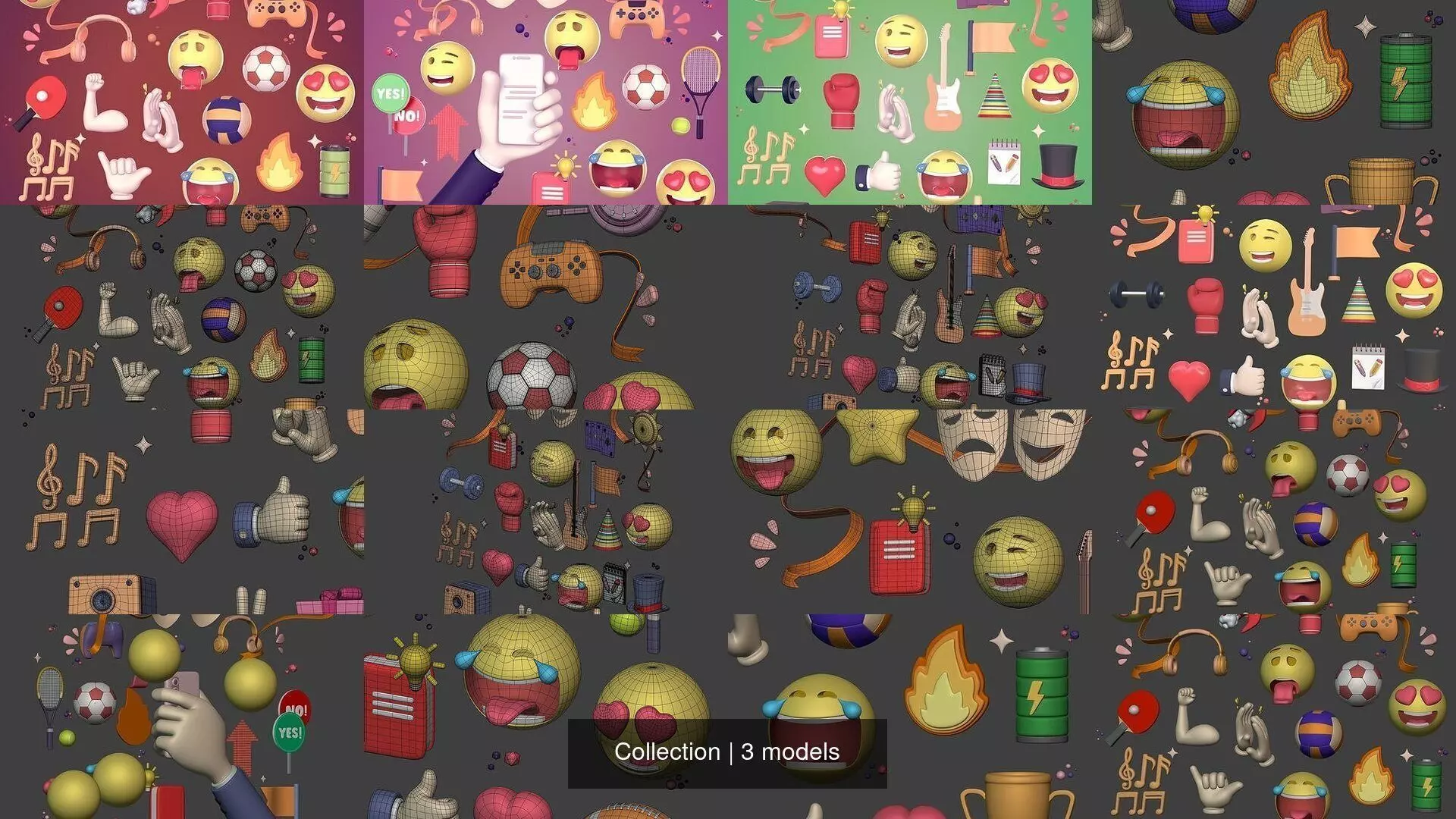 Cartoon Icons Collection - AD - Emoji - Smiley - Music - Sport 3D Model Pack