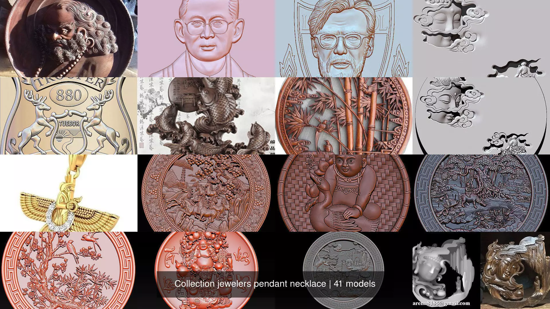 High quality *.stl 3d model - Collection jewelers pendant necklace3d model created for CNC Router Carving or 3d printer.Model is ready for prototyping on CNC and 3D Printing.