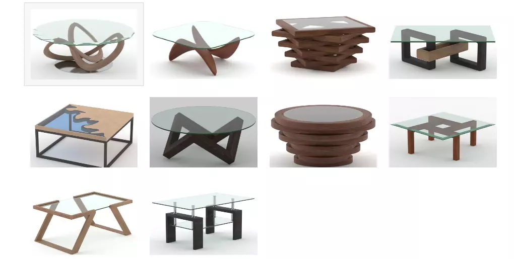 10 coffee tables with standard dimensions for your use in interior design and games and wherever you need.At a great price.The files are also available individually. With all the formats you need. Any questions you may have will be answered as soon as possible