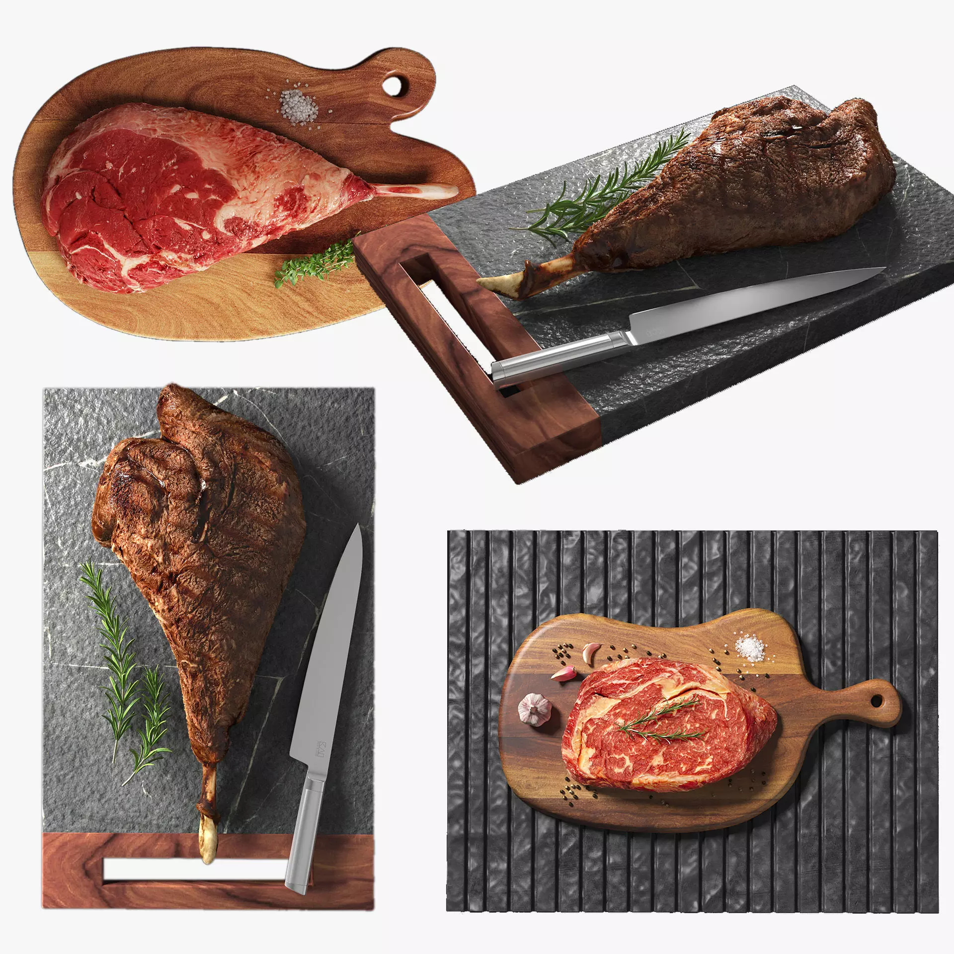 A collection of 3 high quality models. Different beef cuts, raw and cooked. Based on real beef, photographed and cooked by me.