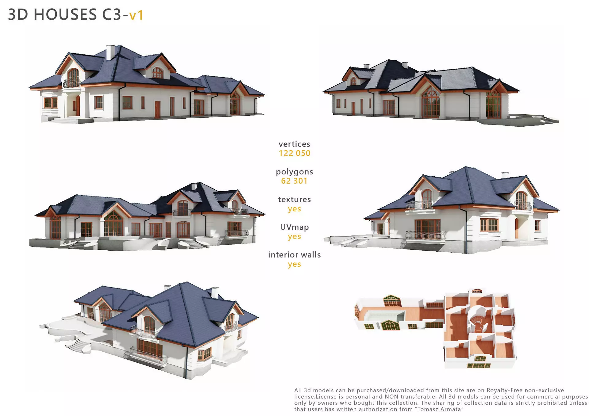 third 12 houses- 99,90$https://www.cgtrader.com/3d-model-collections/collection-of-houses-3-full-12models