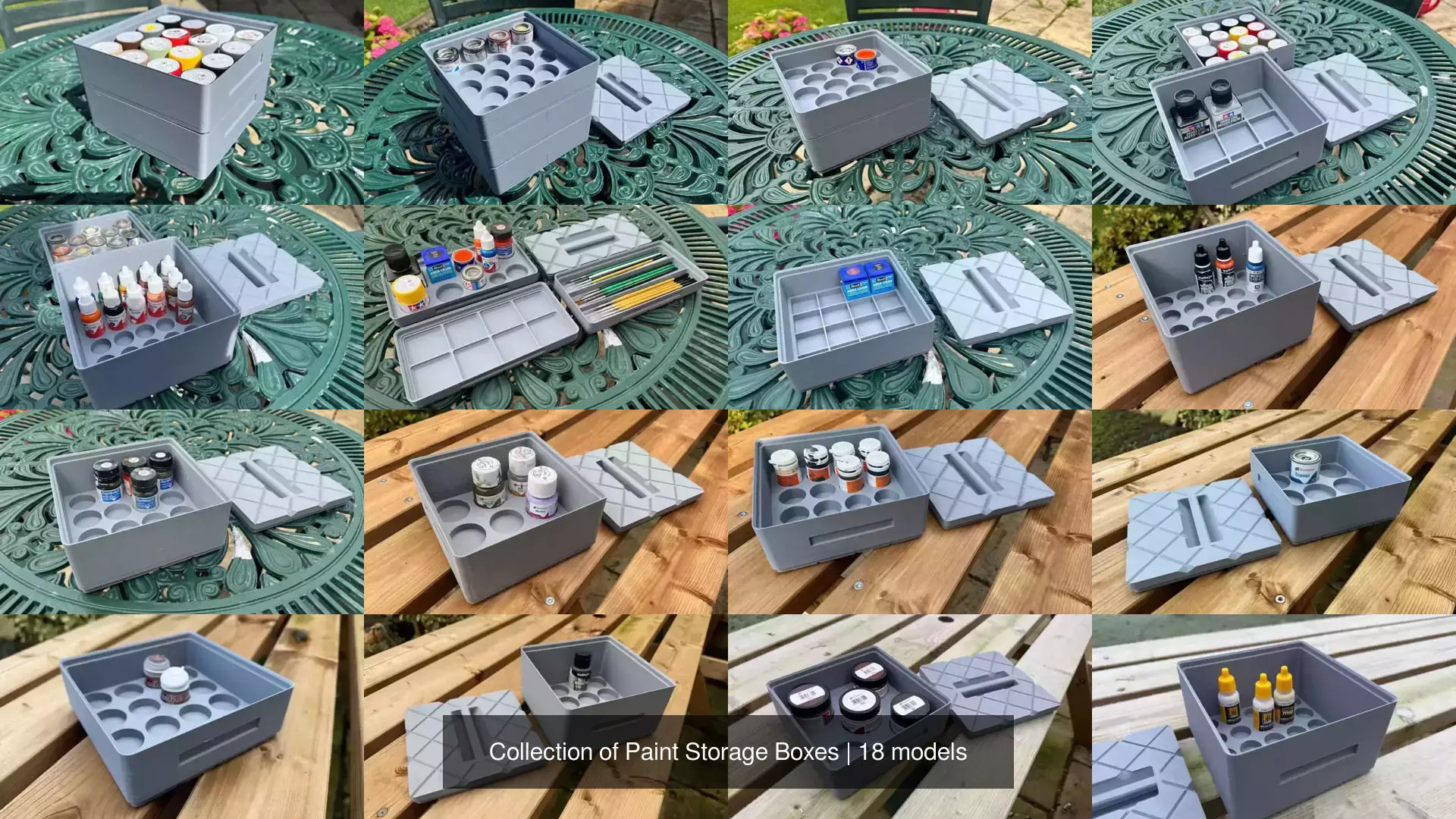 This is a collection of designs that all stack together for different model paint manufacturers such as Tamiya, Citadel, AK, Ammo, Revell, Humbrol, Vallejo, and RailMatch