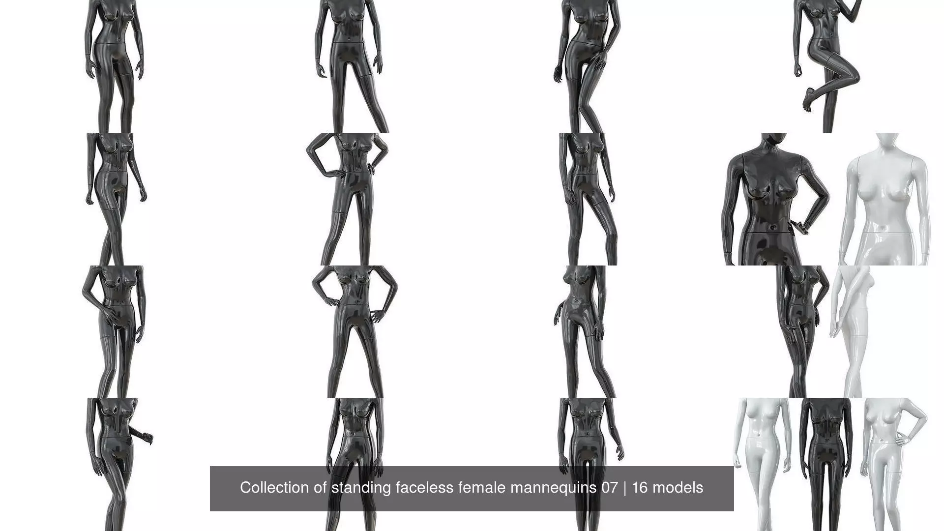 3ds Max 2010. V-Ray 2.40.03. File formats fbx, obj, 3ds, stl, dae, c4d, dwg, dxf, ztl. Collection of faceless female mannequins.