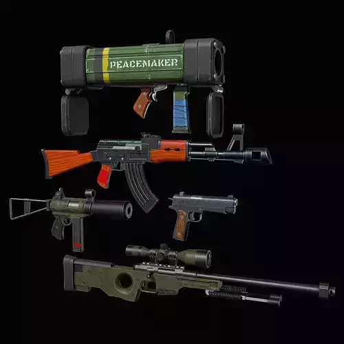 Collection of stylized weapons. All models have optimal topology and don't contain any n gons. The collection contains such weapons