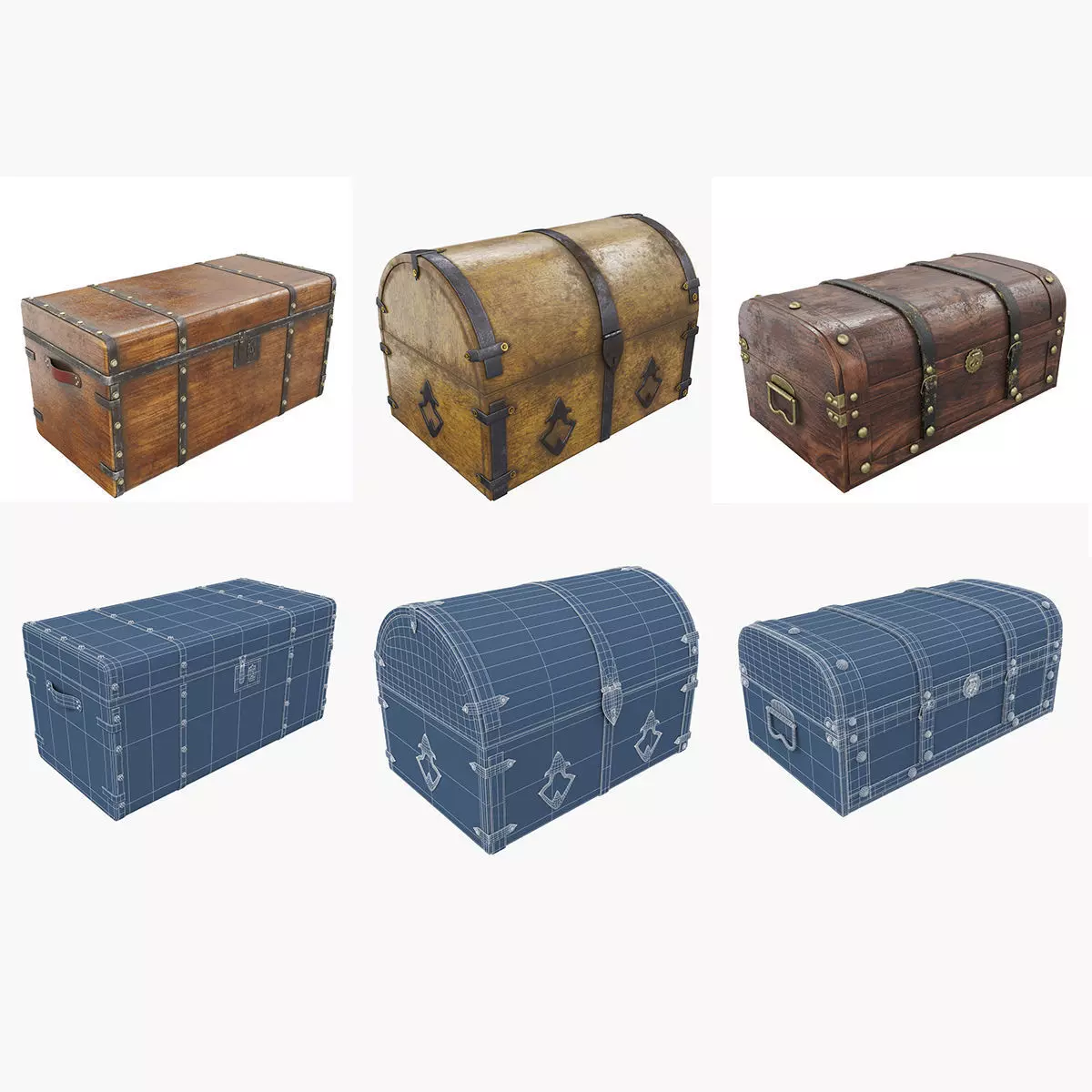 The set contains 3 vintage chests.All models is ready for smoothing (Turbosmooth, Use NURMS Subdivision, etc.). Use it for better results.Also included additional fbx, obj, 3ds formats. All formats have been tested and work correctly.All objects, materials and textures are named appropriately.