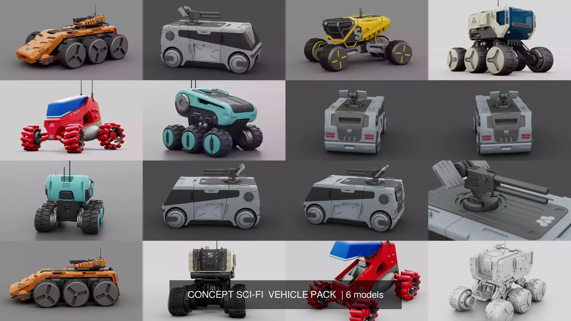 CONCEPT SCI-FI VEHICLE PACK made in Blender 3.0 Light setup in Cycles. Ready for your Personal Websites, Movies, TV,advertising, etc.