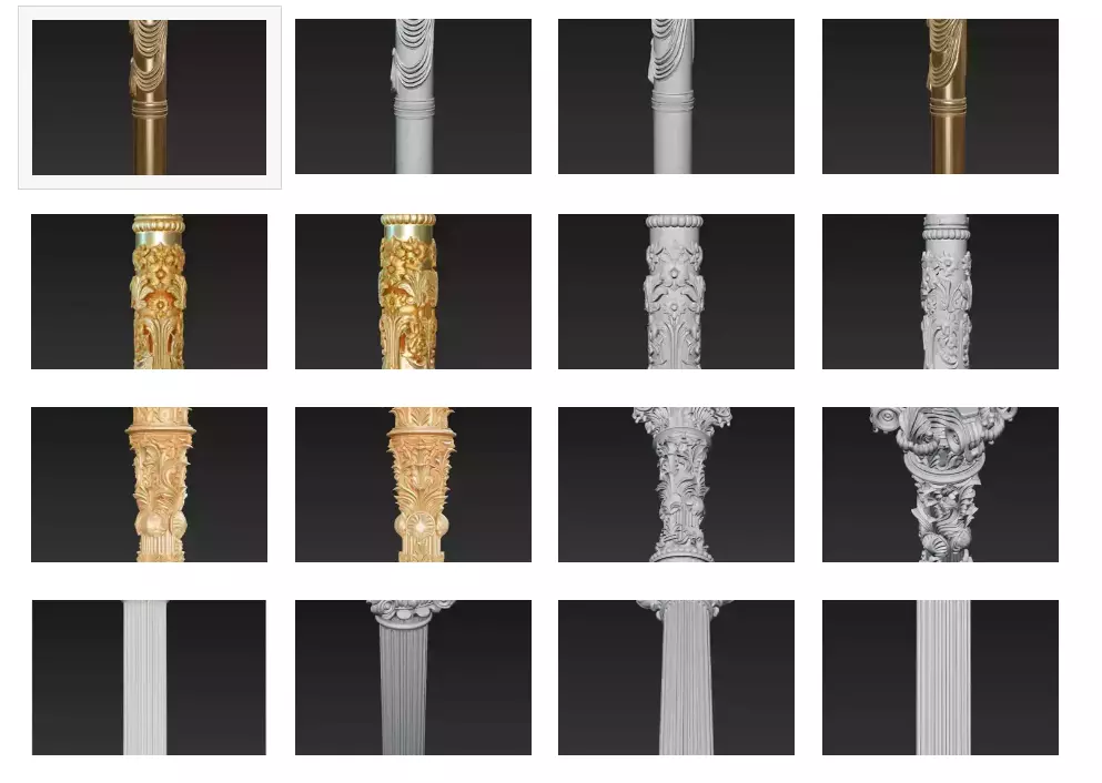 Explore a refined selection of classical architectural pillar sculptures featuring Corinthian and Ionic styles. This collection includes 4 high-detail models ideal for historical reconstructions, game environments, or decorative renders. Each model is optimized for clean topology, multiple formats, and rich visual presentation.