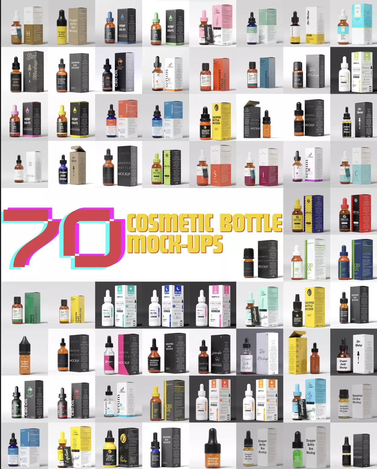 This collection is made of 70 high-quality mockup models, created in Blender 3.0 and rendered with the Cycles Render engine. This collection was created with the satisfaction of the Customer in mind. The mesh of these models are not joined in any way, the meshes are all separated. The UV mappings are all done and ready. The Labels are created in 4K to ensure the highest quality of render as possible. No stretching or bad topologies in the meshes, all the models are quad-based and subdivided. Included with this package are the following formats: