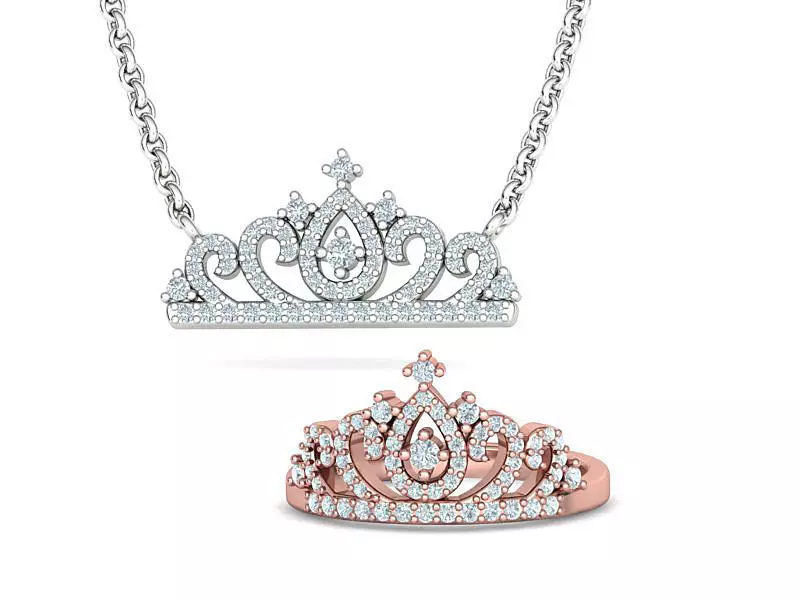 Crown Tiara Ring and Necklace collection with discount 3D Model Pack