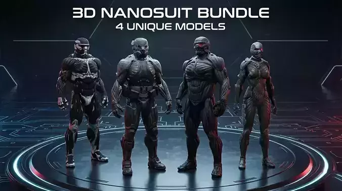 Command the complete Crysis Nanosuit evolution with this ultimate bundle. Features four distinct, high-detail Nanosuit variants from the Crysis franchise. Each model is built with PBR textures, full animation rigs, and modular armor systems for games, animations, and futuristic military projects.