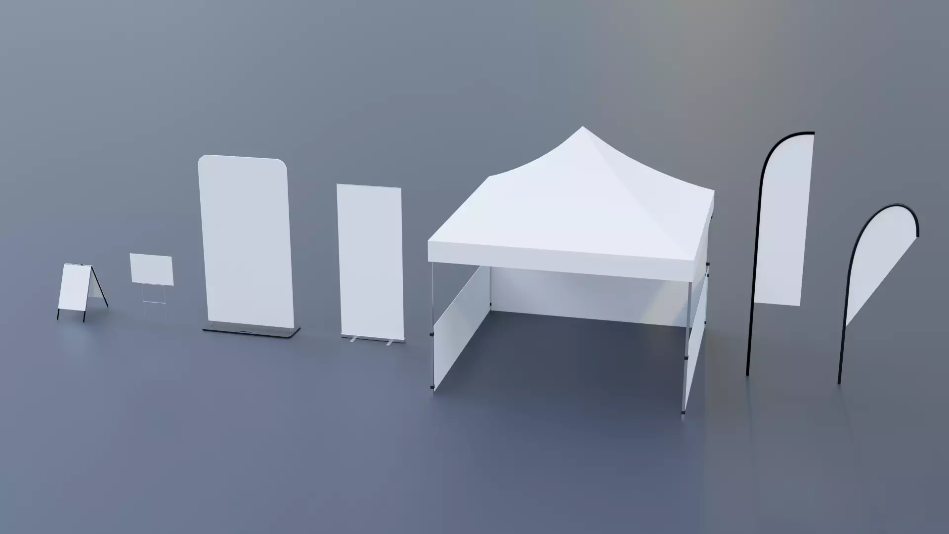 Customizable Advertising Signage 3D model collection created in Blender featuring clean, low-poly designs that make the 3D models ideal for game development, rendered scenes, and background props in animations.