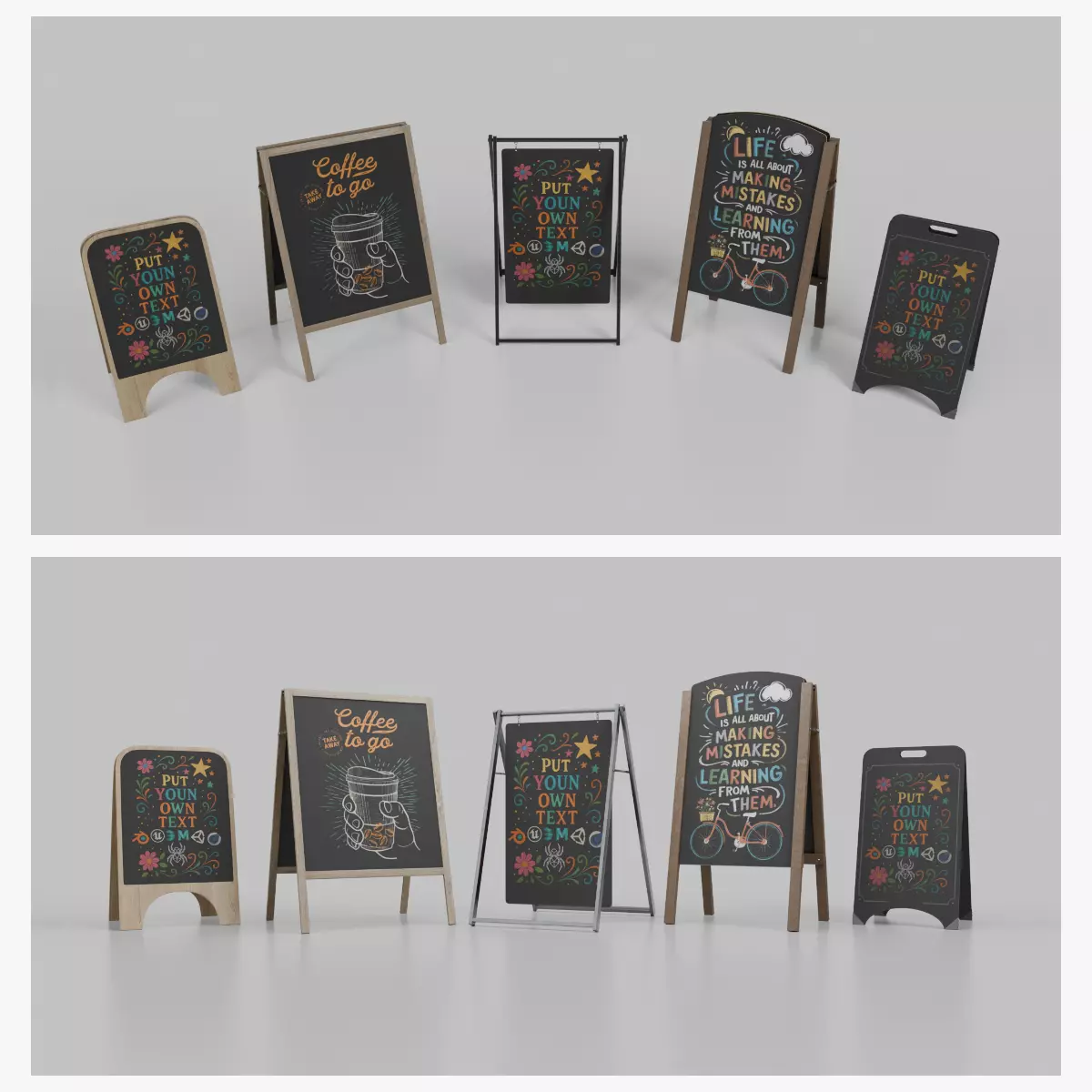 • Customizable Chalkboard Surface: Ideal for adding your own text, graphics, or advertisements.• High-Quality Textures: Handcrafted wooden frame with realistic details for a natural, authentic look.• Clean Topology & Real-World Scale — Quad-based topology ensures smooth surfaces for high-quality renders and animations.• Optimized for Real-Time Use — Game-ready, suitable for offline and real-time engines such as Unity, Unreal Engine, and other game engines.• Fully Organized Hierarchy — Easy to use, with proper pivot points and clear object structure.