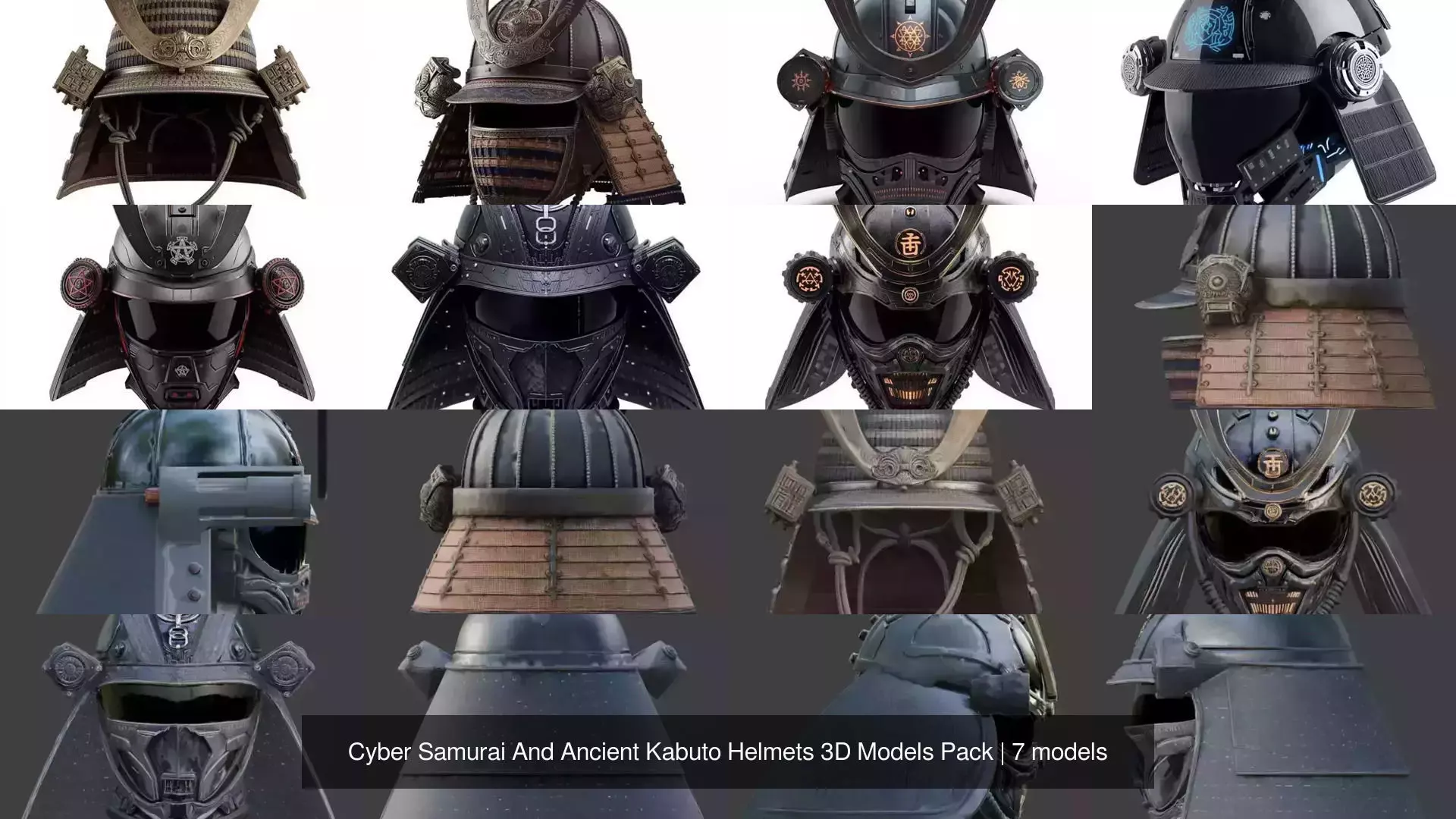 Cyber Samurai & Ancient Kabuto Helmets Collection – 3D Models PackDescription