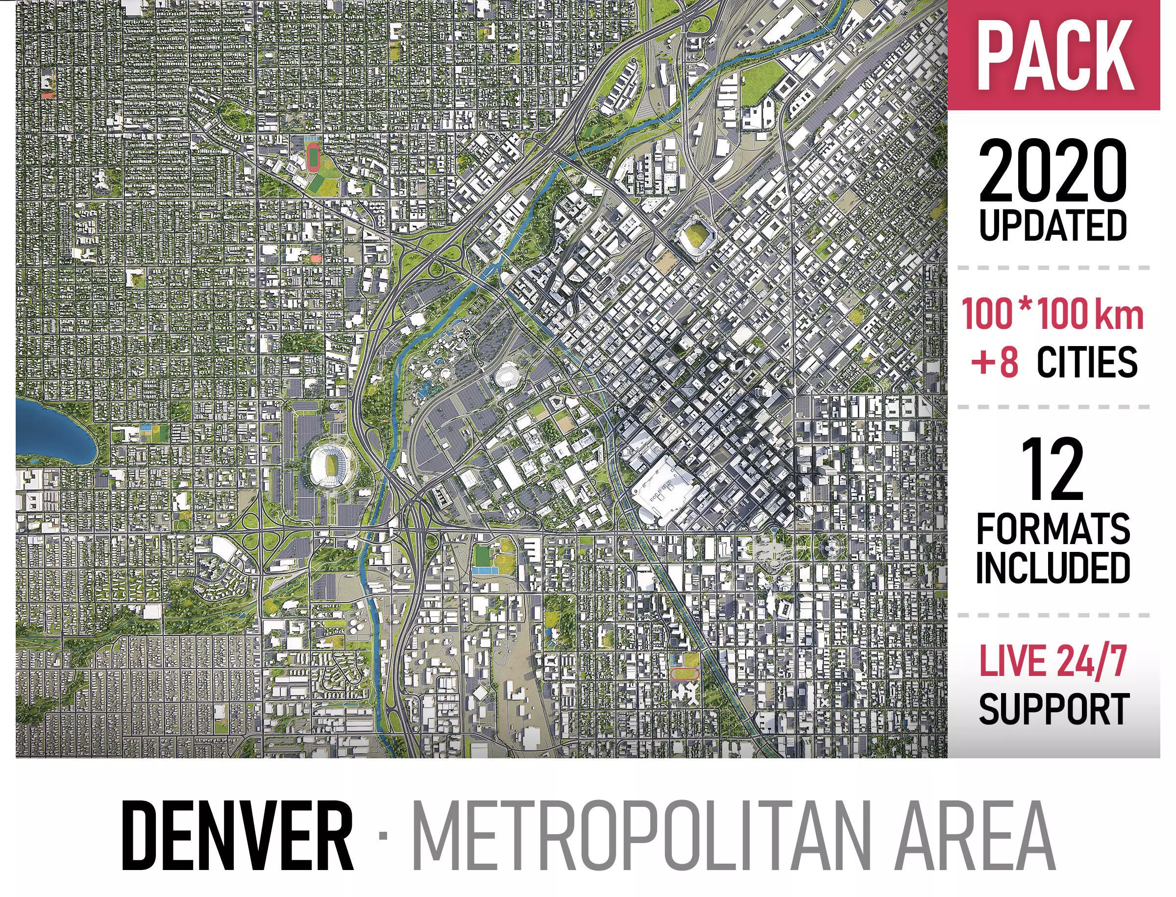 This is exact and accurate to scale 3D city model of Denver Metropolitan Area based on GIS data (May 2020)